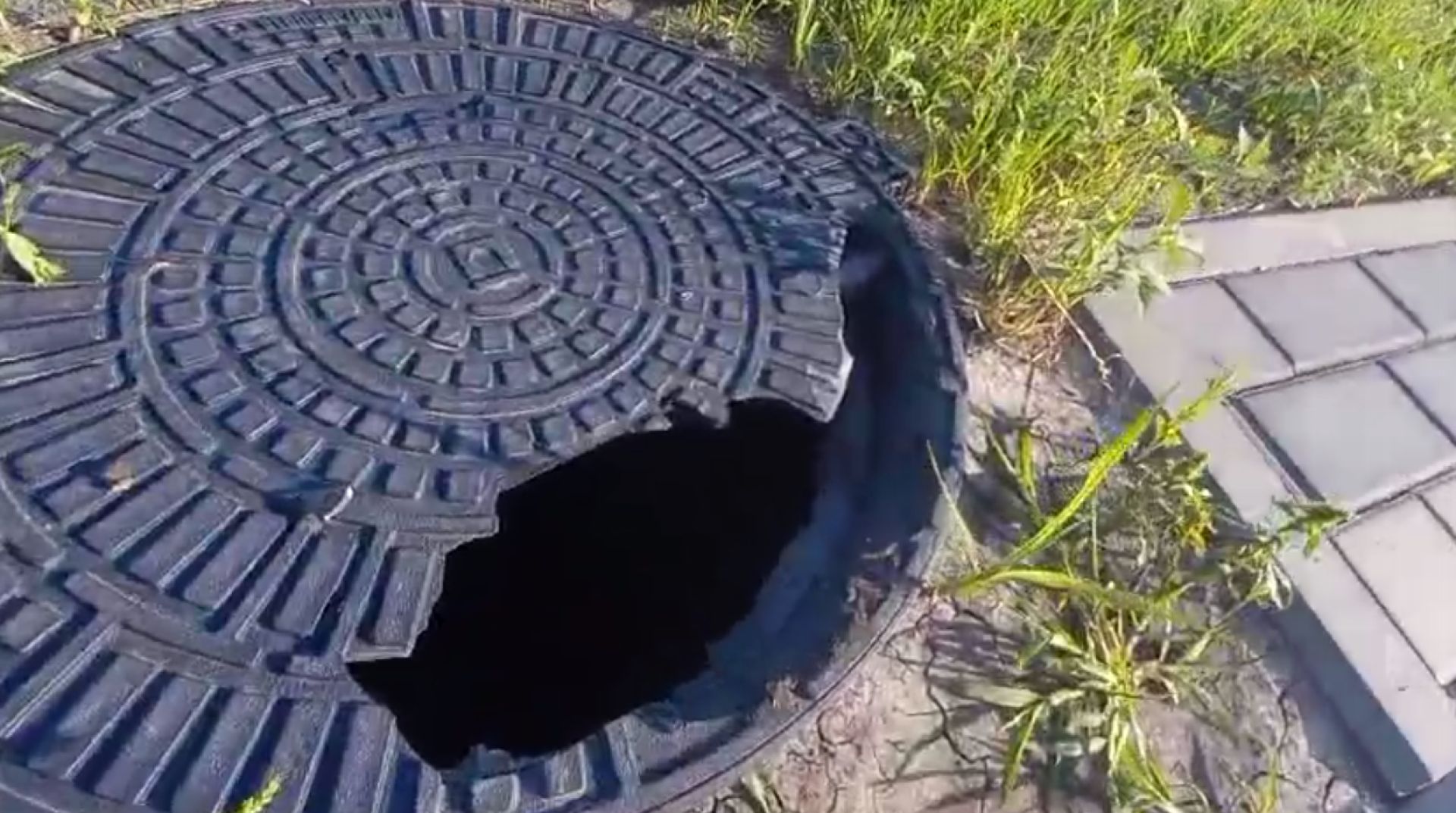 Люк находится неподалёку от ЖК «Олимпийский». На кадрах видно, что у него нет куска крышки. По словам читателя «МОЁ!», в него легко могут влететь велосипедист или самокатчик.
