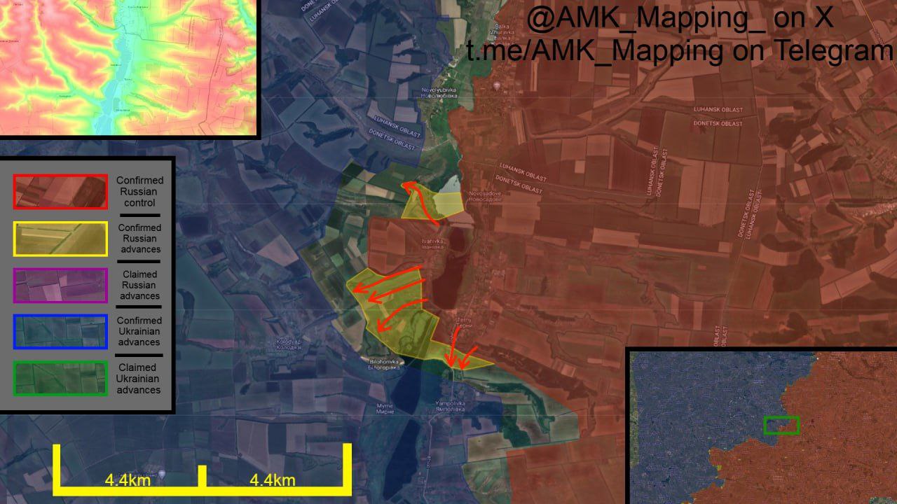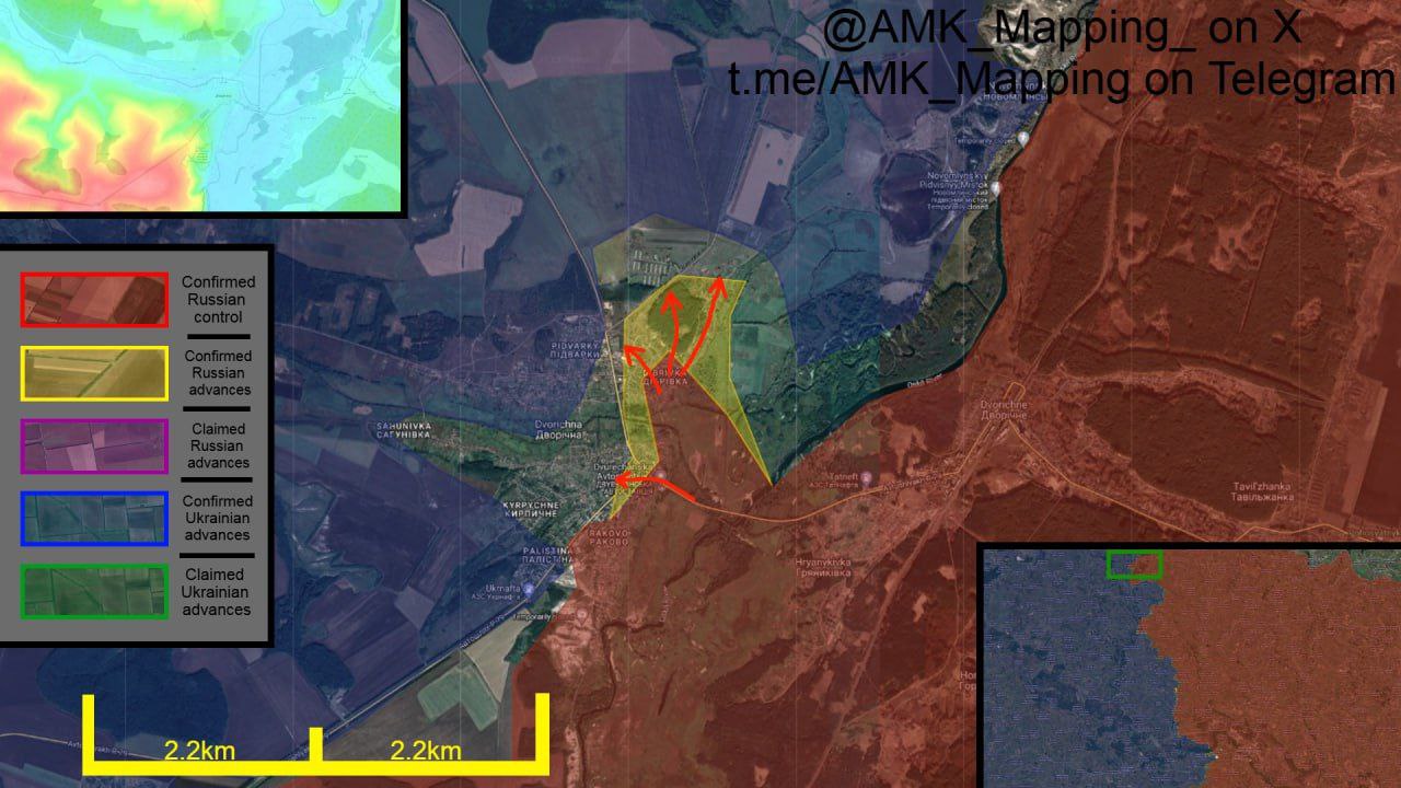 Также сообщается об успешном расширении плацдарма на западном берегу реки Оскол, и переходе под российский контроль района Дибровки в Харьковской области.