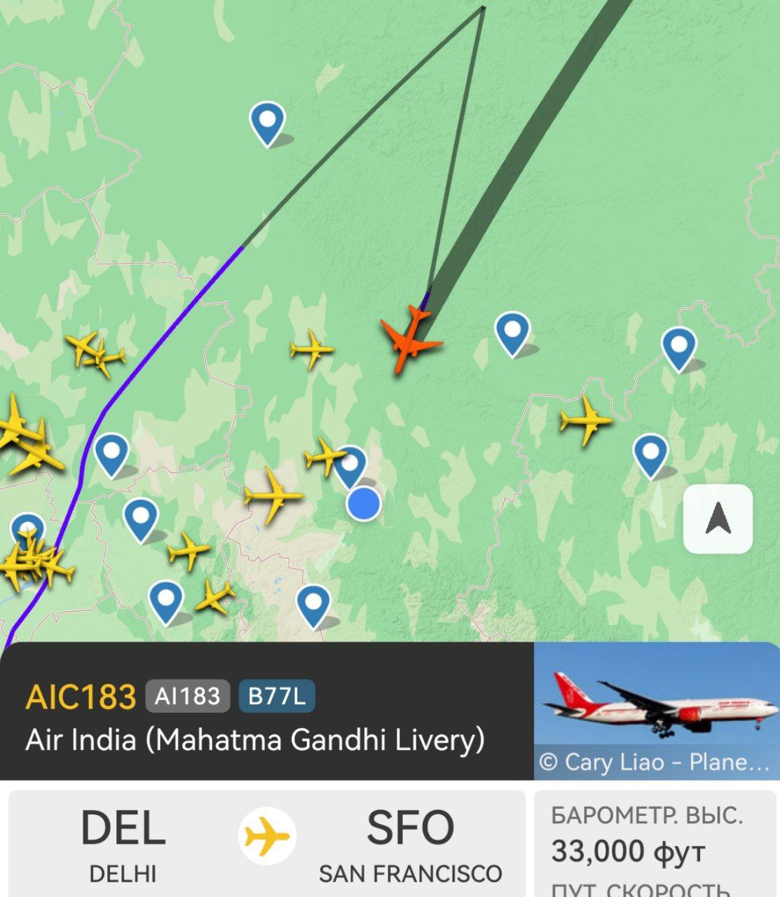 "Боинг-777", следующий из Дели в Сан-Франциско, экстренно садится в Красноярске. Борт компании "Эйр Индия" резко изменил курс в Эвенкийском районе. Причина, по которой экипаж пошёл на вынужденную посадку, не сообщается. В аэропорту Красноярска Kras Mash подтвердили эту информацию. ❤ Подписывайся на Kras Mash