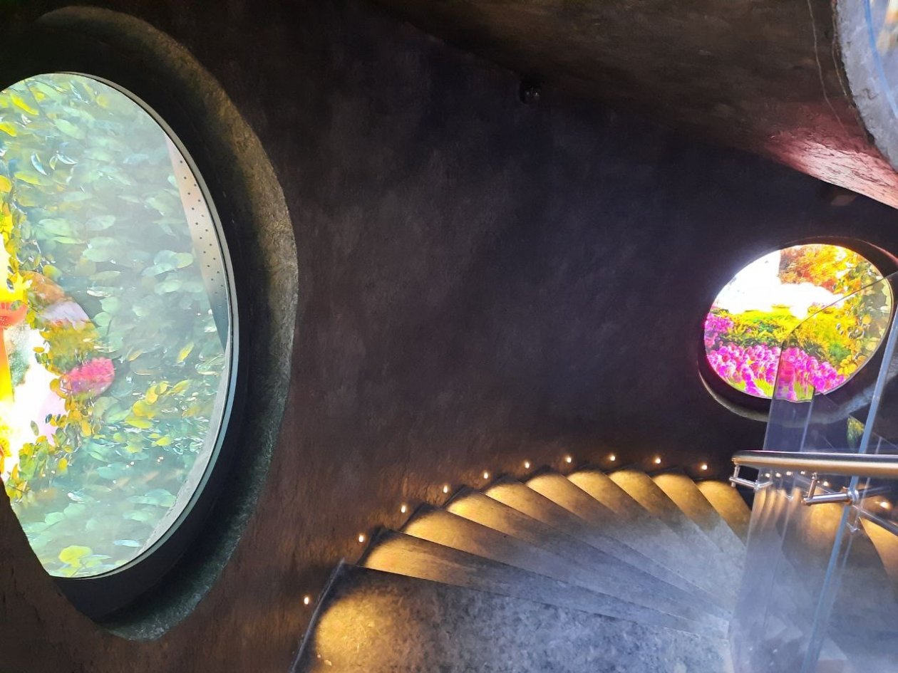Ещё одной заметной точкой станет сферический зеркальный павильон. Поднявшись по его спиральной лестнице, посетители смогут полюбоваться панорамным видом на парк. Особый интерес вызывает площадка с бетонными цилиндрами, где разместят водные каскады и многоуровневые зелёные террасы, вдохновлённые легендарными висячими садами.
