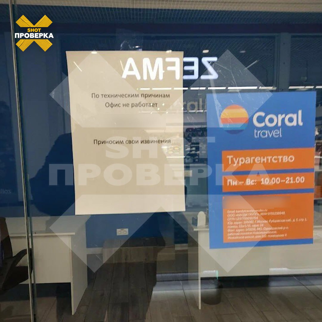 Как стало известно SHOT ПРОВЕРКЕ, оставшиеся без отпуска туристы пожаловались на турагента — ООО «Канди Групп». Компания продавала путёвки в офисе с вывеской Coral Travel в подмосковном торговом центре «Ашан Марфино». Директор агентства — Юлия Щербакова — перестала выходить на связь с клиентами после того, как они оплатили услуги. В прошлом году обманутые клиенты внесли полную сумму за путёвки на Мальдивы и в ОАЭ, но поездки отменили в последний момент. Часть туристов столкнулись с тем, что по приезде в другую страну гостиница оказалась не забронирована. Стоимость туров — от 500 тысяч рублей.