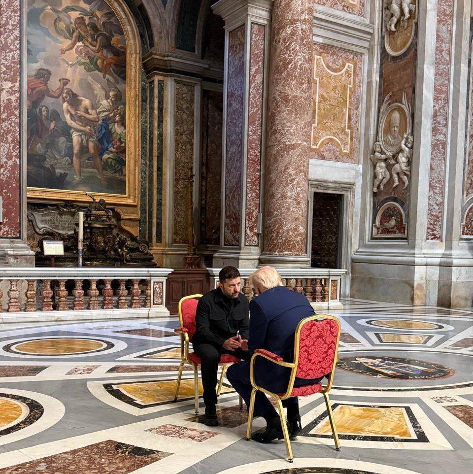 Трамп и Зеленский на стульях почти вплотную: появились фото с их встречи в Ватикане. Она длилась 15 минут. К ним присоединились Макрон и Стармер. После церемонии захоронения Папы Римского Зеленский и Трамп проведут дальнейшие переговоры, писали в Sky News 🟩 Подписаться | Прислать новость | Читать аналитику