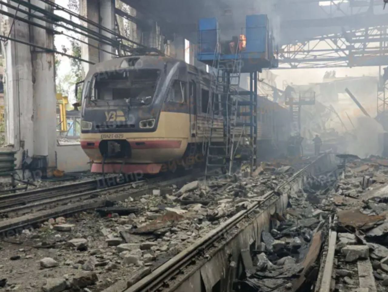 Находящийся в локомотивном депо станции Днепропетровск тяговый состав полностью уничтожен. Работа железной дороги приостановлена, поезда отправляются с задержкой.