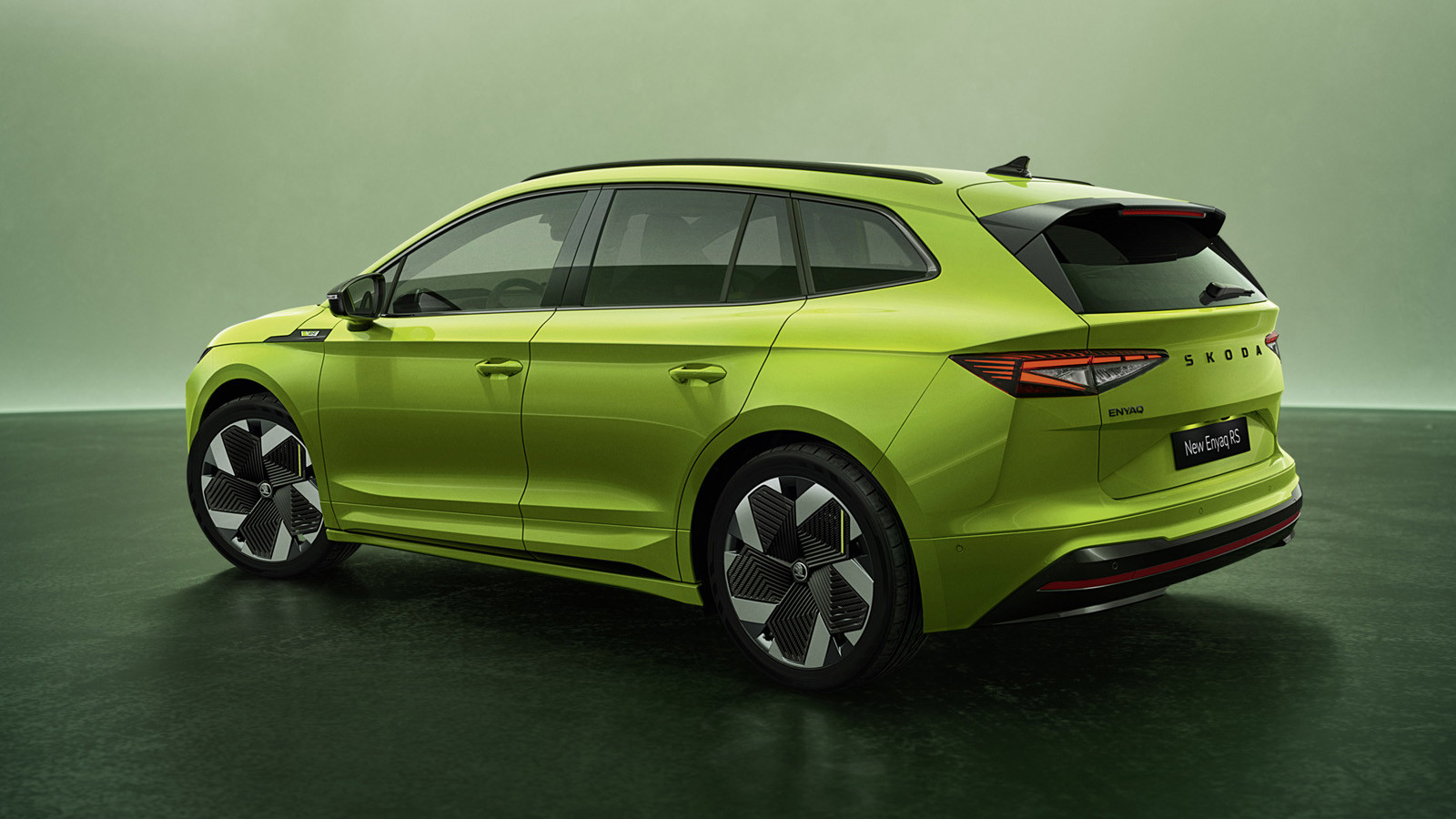 Обе модификации посвежевших «заряженных» кроссоверов получили антенну «акулий плавник», которая расположена на крыше, а также длинный светоотражатель, проходящий через всю ширину заднего бампера. Фонарям оставили прежнюю форму, но слегка изменили световой рисунок. Спойлер, установленный в верхней части багажной двери у Skoda Enyaq RS, трогать не стали.