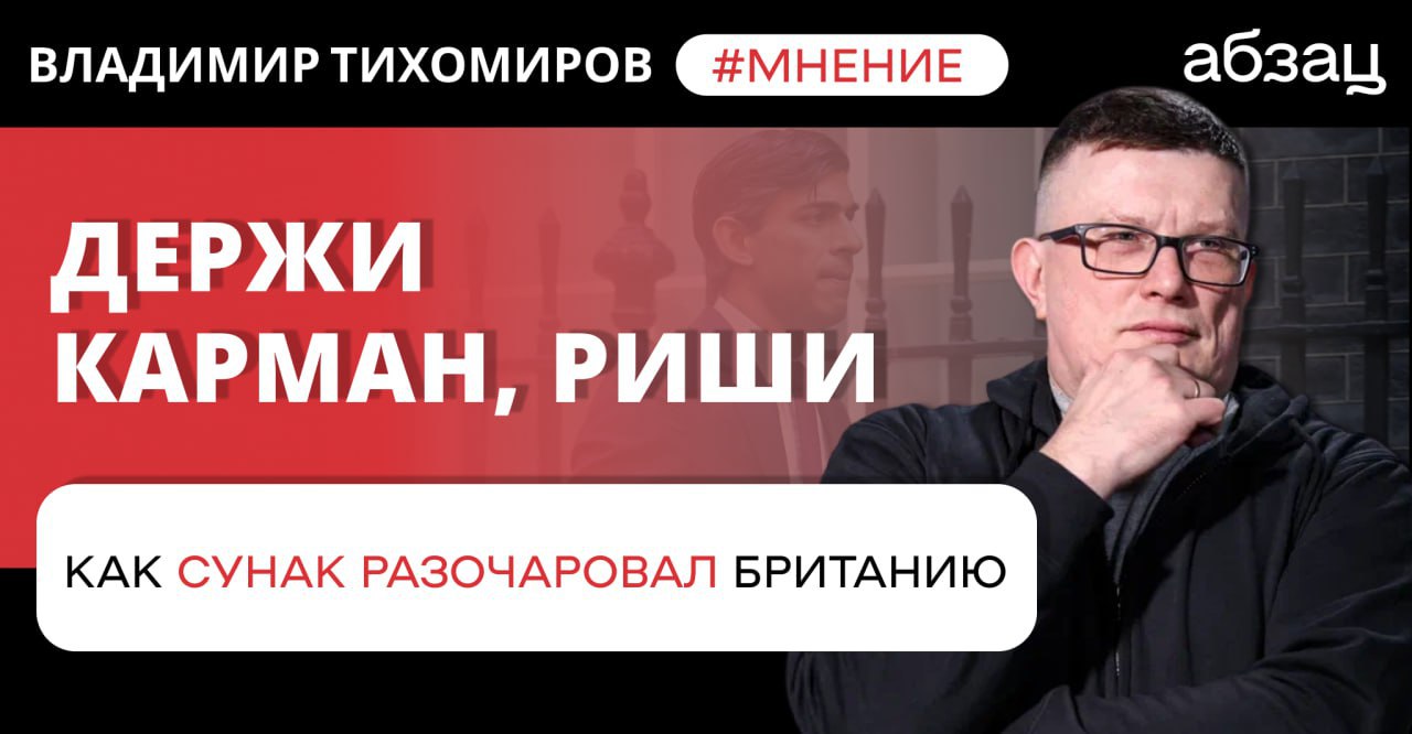 Особенно досталось Риши после его выступления, где премьер на голубом глазу заявил, что в рецессии британской экономики виноват лично Путин. Тут уж даже правительственные СМИ стали называть Сунака дешёвым клоуном…» (полный текст читайте здесь)