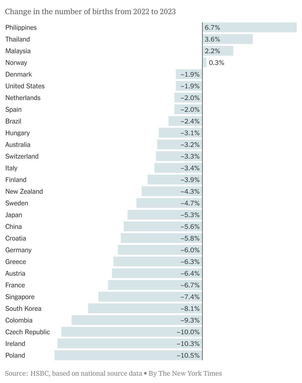 πΠΠ·ΠΌΠ΅Π½Π΅Π½ΠΈΡ ΠΊΠΎΠ»ΠΈΡΠ΅ΡΡΠ²Π° ΡΠΎΠΆΠ΄Π΅Π½ΠΈΠΉ Π² ΡΡΠ΄Π΅ ΡΡΡΠ°Π½ Π² 2023 Π³ΠΎΠ΄Ρ ΠΊ 2022 Π³ΠΎΠ΄Ρ