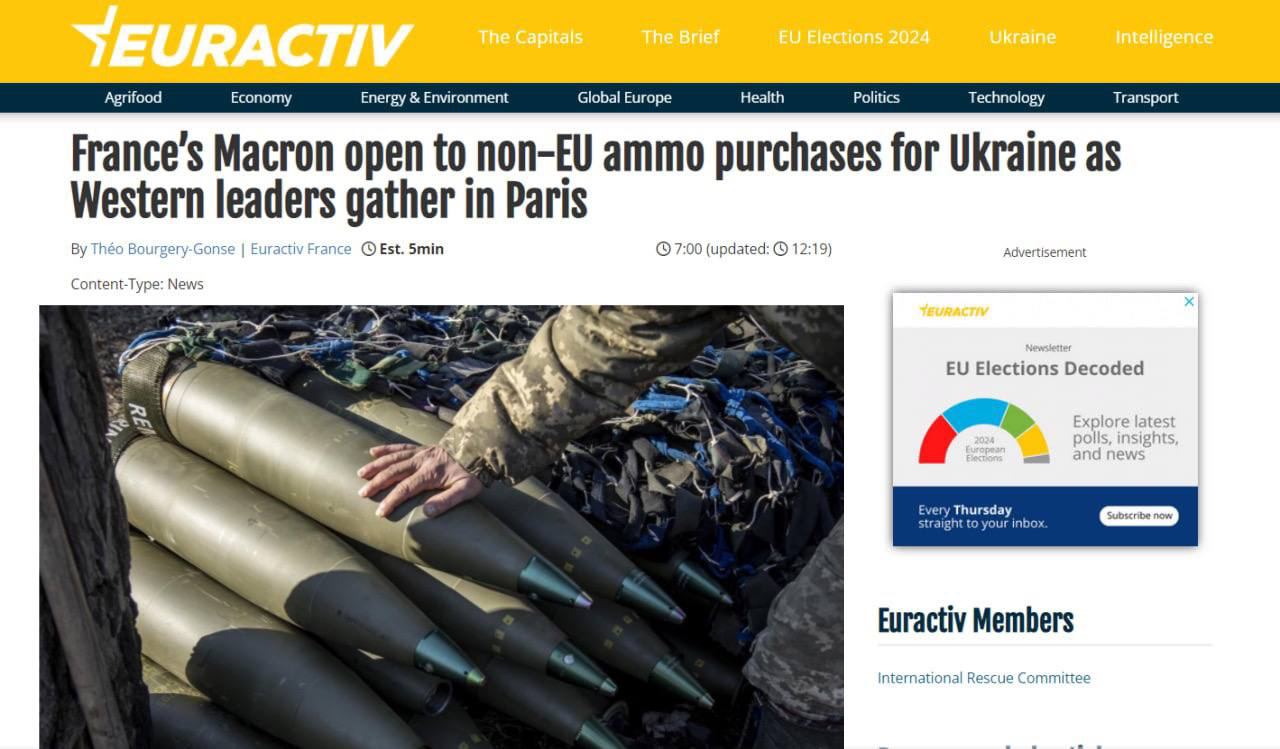 🇫🇲🇺🇦Макрон согласился на инициативу Чехии закупить снаряды для Украины за пределами блока НАТО – Euractiv