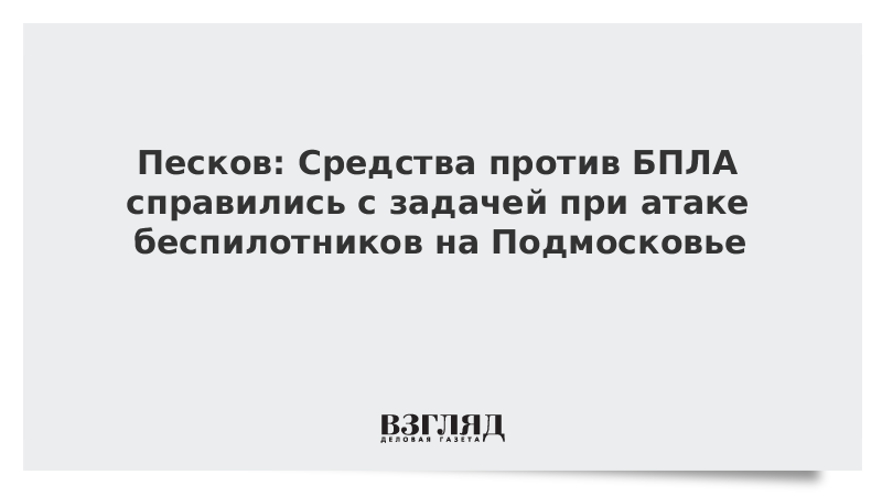 Средства по борьбе с беспилотными летательными аппаратами выполнили свою задачу во время атаки БПЛА на Подмосковье, заявил пресс-секретарь президента Дмитрий Песков.