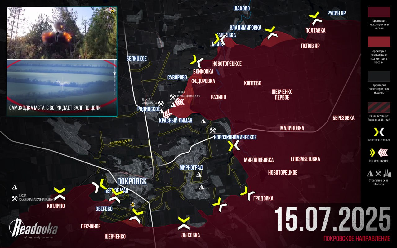 ВС РФ штурмуют шахту «Краснолиманская» на Покровском направлении — итоговая сводка Readovka за 15 июля