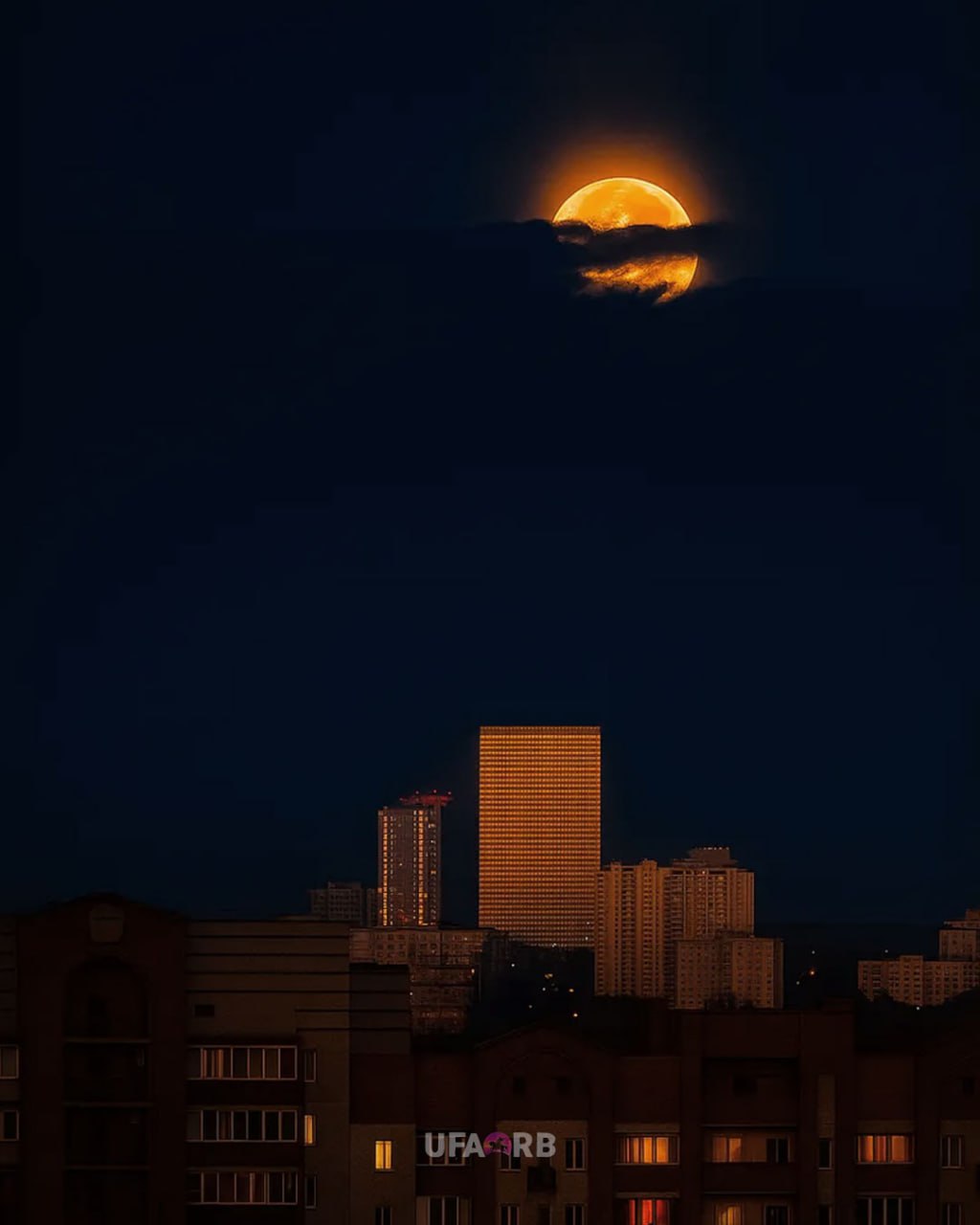Луна на рассвете. Время 07:07. На фото Идэль Тауэр на проспекте Октября