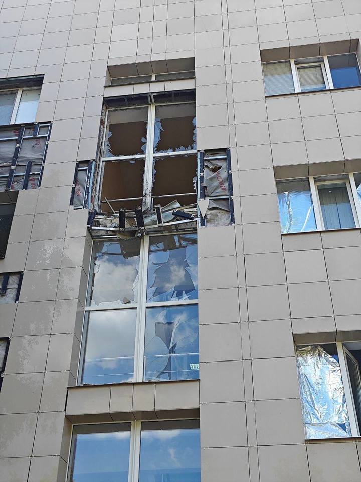 Немногим ранее в Шебекино дрон атаковал соцобъект. В здании выбиты окна на нескольких этажах, осколками посекло фасад и легковушку.