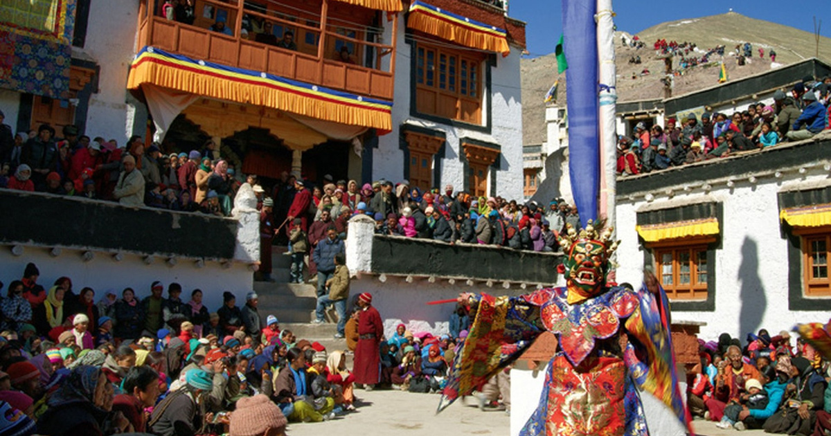Около полудня на центральной площади города было уже не пройти — люди возлагали подношения храмам. Ровно в полдень зазвучали трубы. На улицу вынесли изображение Падмасамбхавы — учителя буддизма, проповедовавшего в Тибете в VIII веке. Появились люди в красочных нарядах с благовониями в руках. Затем на площадь вышли танцоры в костюмах, изображающие богов буддийского пантеона, и стали разыгрывать сценки из тибетских религиозных мифов.