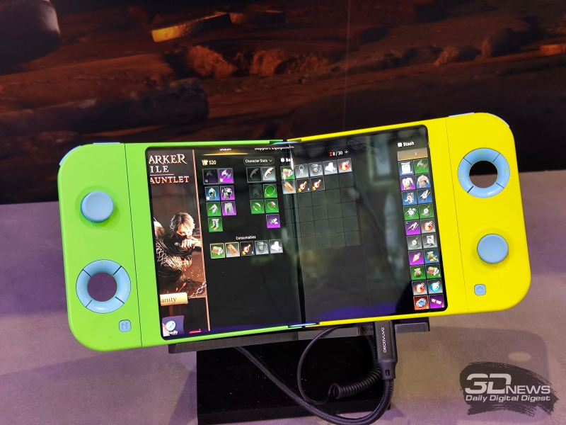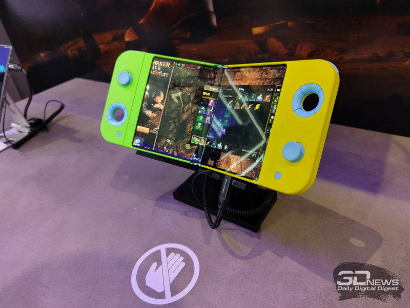 Если дизайн Asymmetric Flip не привлекает особого внимания, то концепт портативной игровой консоли, представленный на стенде Samsung, кажется более проработанным. Его внешний облик напоминает изящную Nintendo Switch, дополненную шарниром посередине, за счёт чего устройство можно сложить вдвое.