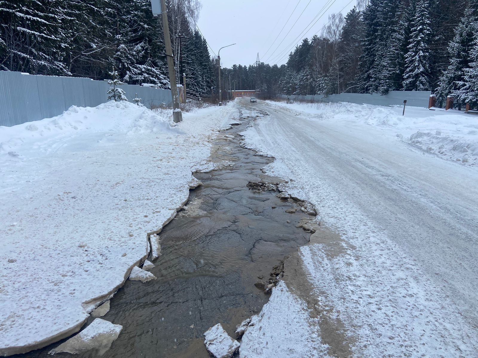 На фото и видео, которые редакции НГС предоставил Сергей, видна размытая дорога и мутная вода, вытекающая на поверхность по обледенелой обочине. Никаких работ, утверждают жители, на месте не ведется. Специалистов тоже нет.