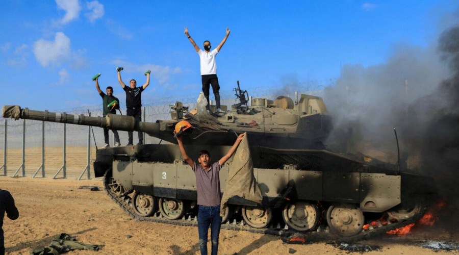 В соцсетях распространялись кадры с атаками палестинских боевиков на израильскую бронетехнику с дронов и на войсковые базы. В частности, был подбит один из самых защищенных танков в мире Merkava Mk4. Вооруженные люди, в основном со стрелковым оружием, просачивались через хорошо укрепленную границу по воздуху, суше и морю, в некоторых местах выстроенная на границе стена уничтожалась с помощью взрывчатки.