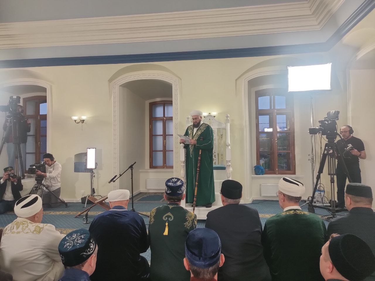 Свою речь лидер татарстанских мусульман начал с зачитывания поздравлений от президента РФ Владимира Путина и главы республики Рустама Минниханова. Камиль хазрат рассказал о смысле праздника жертвоприношения и напомнил историю купца Габдуллы Утямышева, который, кроме маскаринской, строил и другие мечети по всей стране.