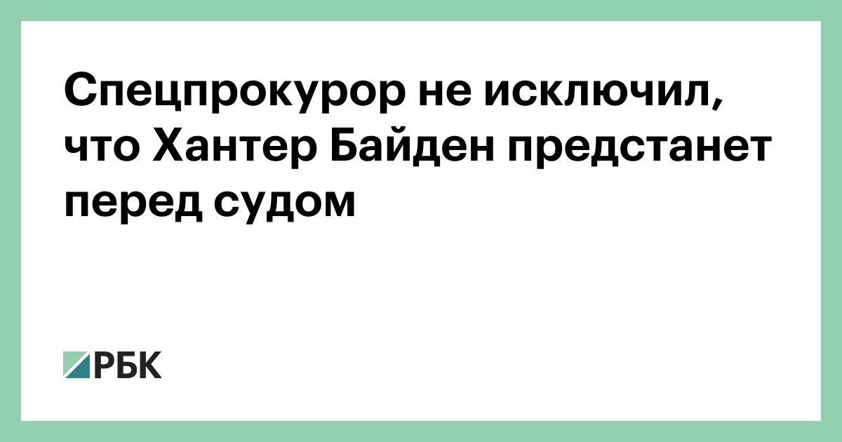 Сын президента США Джо Байдена Хантер может предстать перед судом, не исключил спецпрокурор Дэвид Вайс, который ведет расследование в отношении последнего, сообщает Reuters.