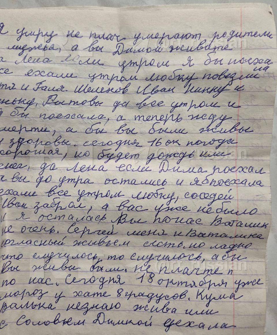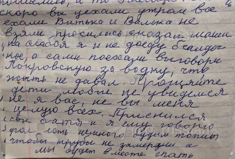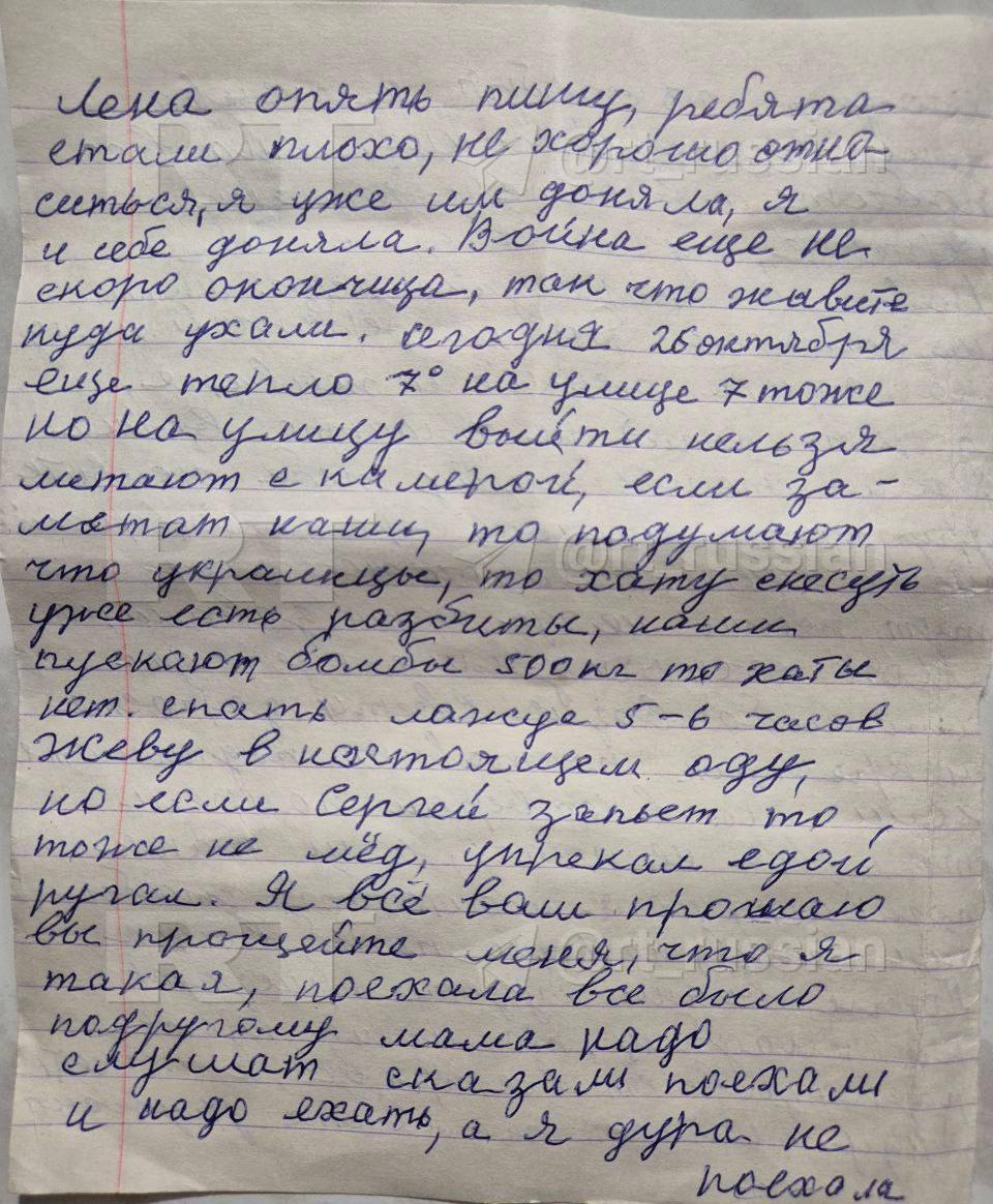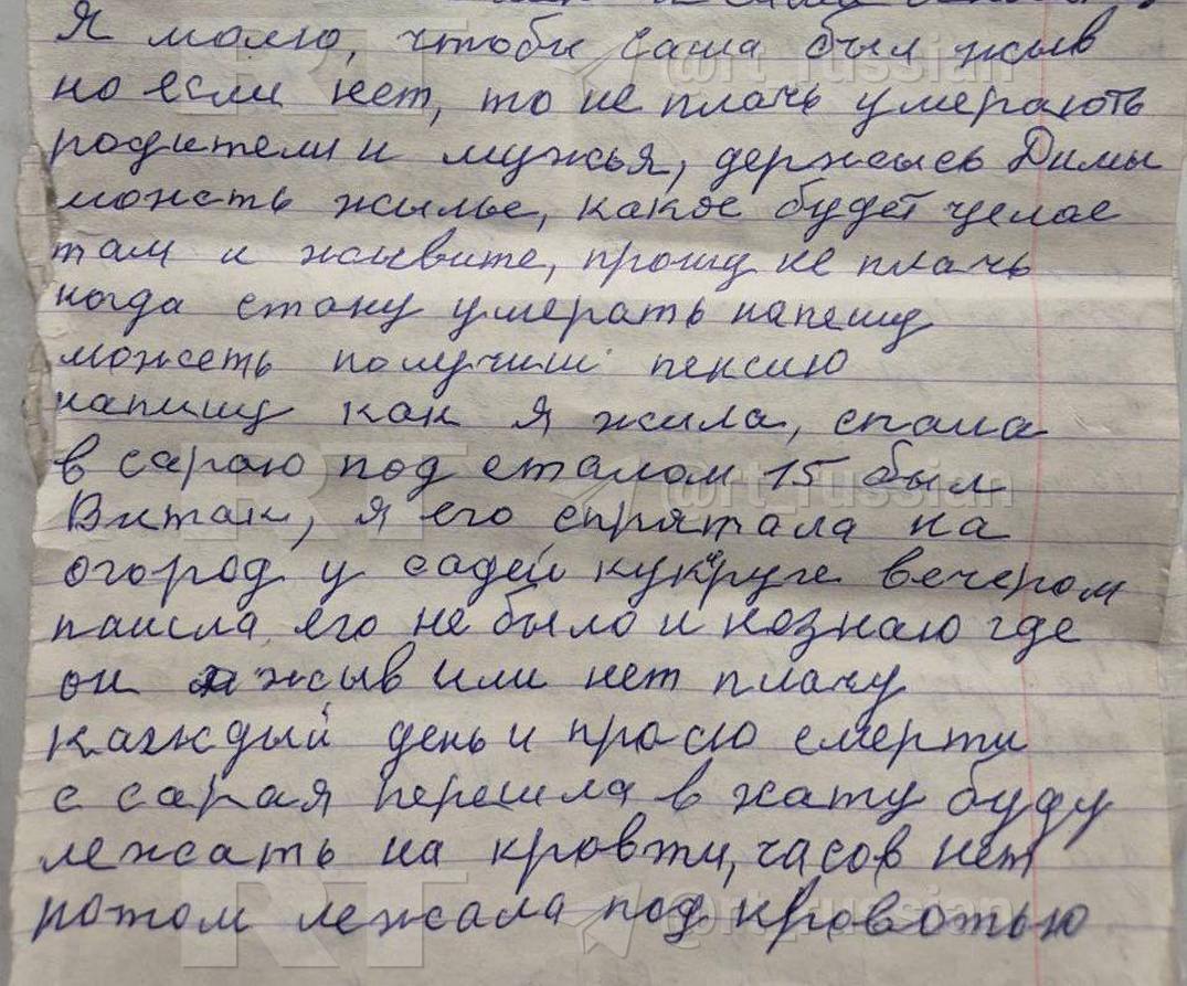 Во время зачистки освобождённой Суджи и сёл в округе нашли записи местной жительницы. Прощается с родными, пишет, что плачет каждый день, и просит нормально похоронить.