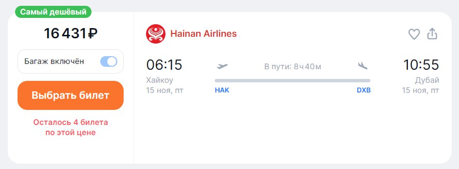 π¨π³π¦πͺ Hainan Airlines Ρ 15 Π½ΠΎΡΠ±ΡΡ Π·Π°ΠΏΡΡΡΠΈΡ ΠΏΡΡΠΌΡΠ΅ ΡΠ΅ΠΉΡΡ ΠΈΠ· ΠΊΠΈΡΠ°ΠΉΡΠΊΠΎΠ³ΠΎ Π₯Π°ΠΉΠΊΠΎΡ Π² ΠΡΠ±Π°ΠΉ