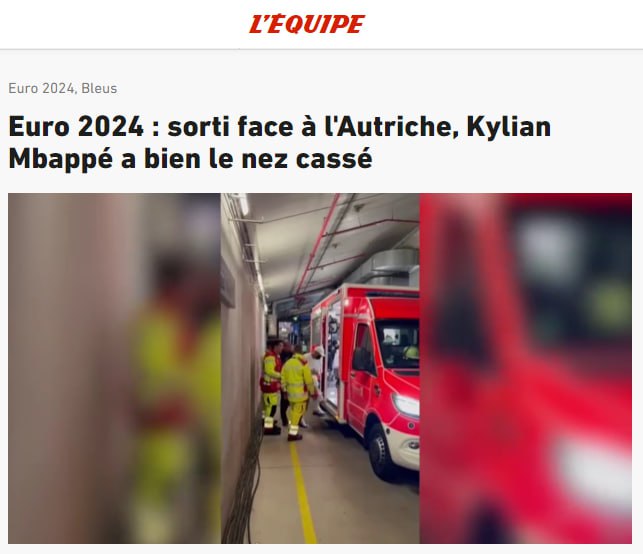 Нападающий сборной Франции Килиан Мбаппе сломал нос в матче австрийцами на чемпионате Европы по футболу