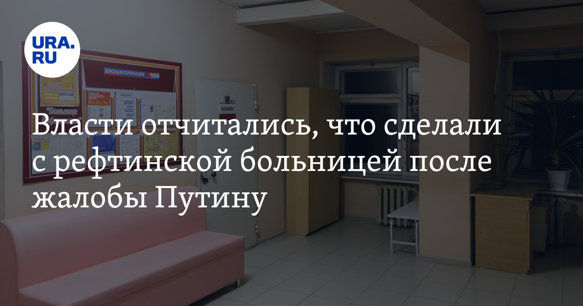 На состояние рефтинской больницы во время прямой линии с Путиным пожаловался местный экс-депутат Егор Перминов. Он заявил, что в больнице разруха, не хватает врачей, оборудования и люди не получают качественную медицинскую помощь. На место срочно выехала комиссия свердловского минздрава, после чего в поселковой больнице начались перемены.