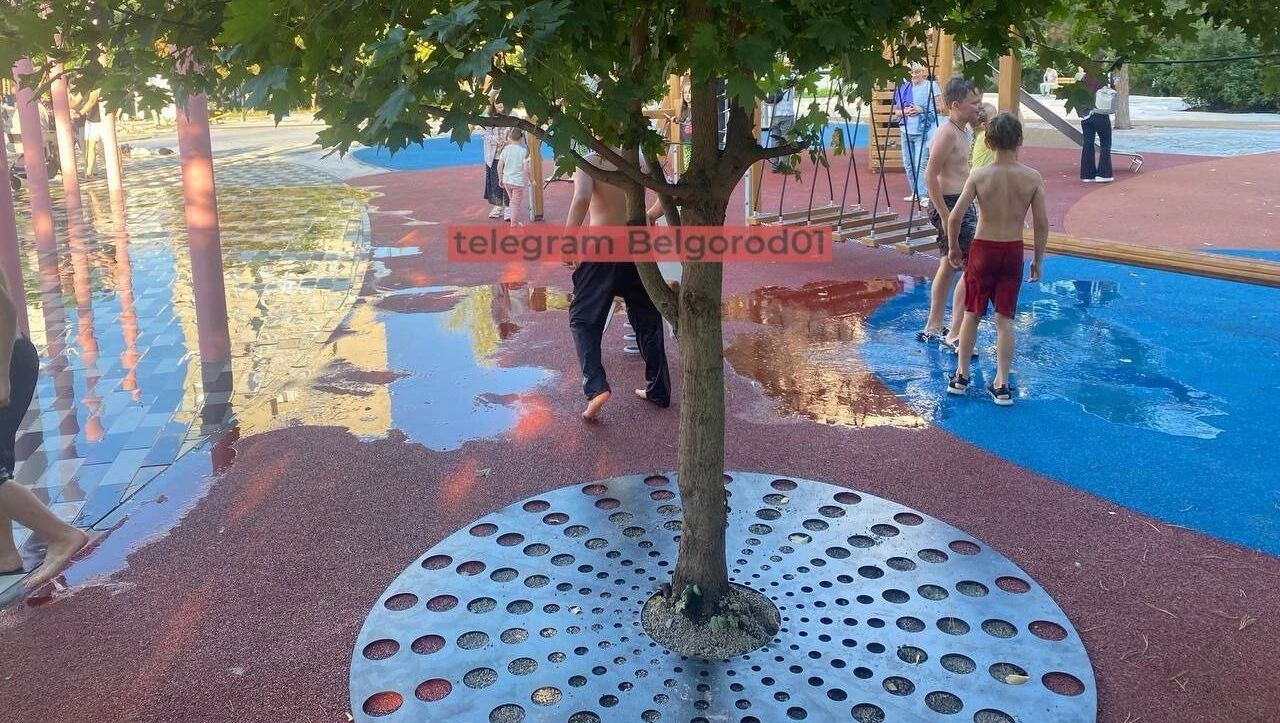 Однако без проблем не обошлось: новая детская площадка в сквере «затонула». На ней появилась вода, вытекшая из ближайшего фонтана. Правда, детей такой расклад, судя по всему, только радует.