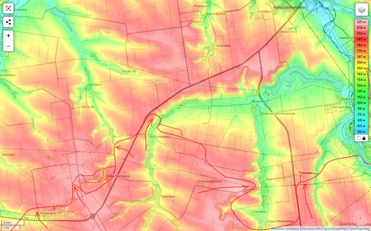 Отступать ему теперь на север далеко придется. Сел здесь, где бы ВСУ могли закрепиться нет. Здесь вообще мало сел. Что с учетом последних изменений в тактике ВС РФ и ВСУ для противника большая проблема.