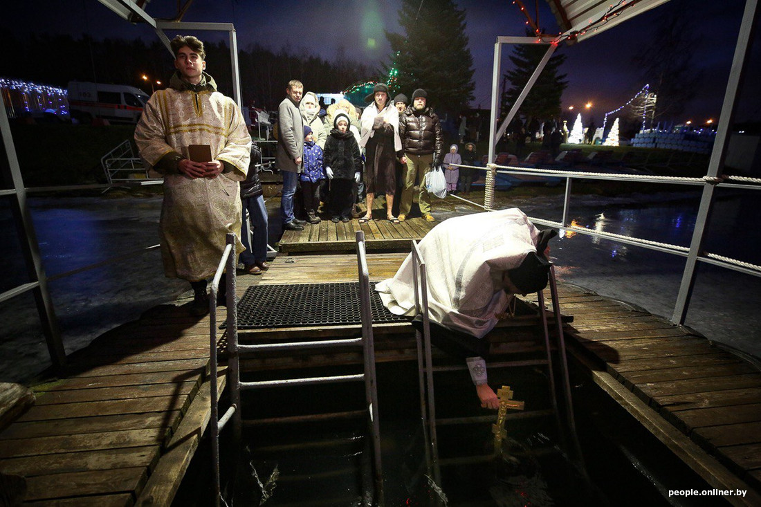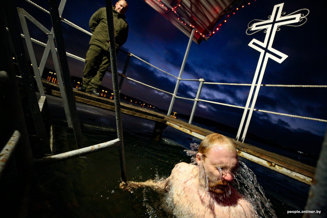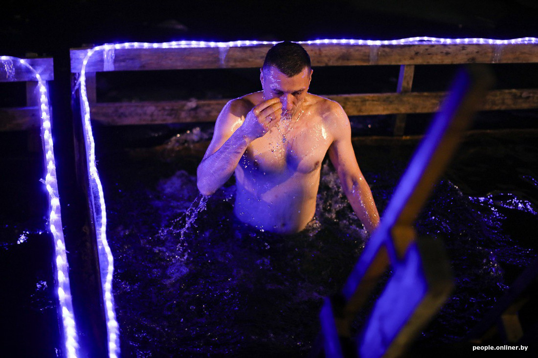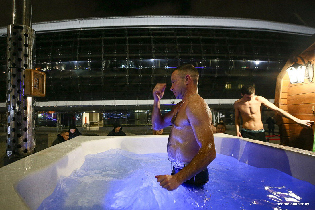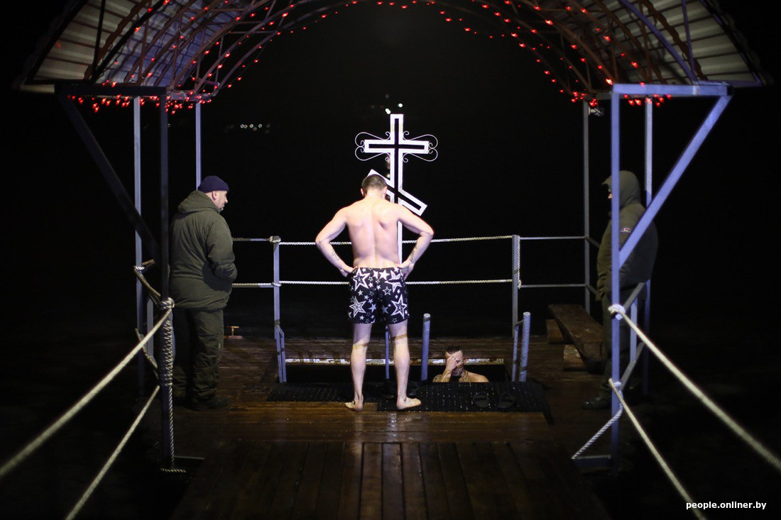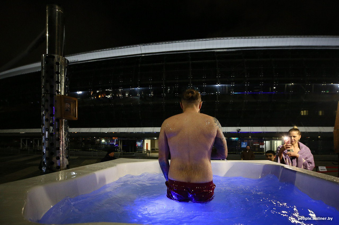 Но народная традиция жива и крепка по сей день. Только знаменитые крещенские морозы куда-то испарились, сменившись вполне себе комфортным плюсом на столбике термометра. В такую слякотную погоду за зимнее настроение отвечал неприятный, колючий ветер, но и он не отпугнул минчан от идеи проверить себя на прочность.