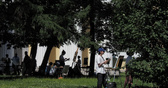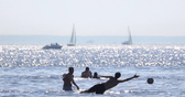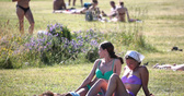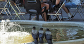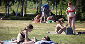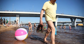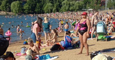 К 11 часам на пляже в Озерках практически не было свободного места. Люди загорали и купались, создавая видимость курорта. Охлаждаются и воробьи с воронами, одни — в луже, другие — в маленьком фонтанчике. Местные жители прячутся в тень, а кто-то прямо у дома выставил шезлонг и наслаждается солнцем.