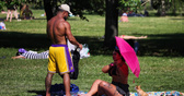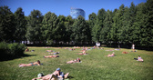 В центре города, в том числе на Невском проспекте, уже начали действовать перекрытия в связи с «Алыми парусами». Горожане и туристы гуляют, а кто-то, наконец, отдыхает после рабочего дня.