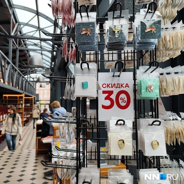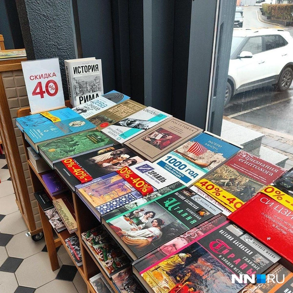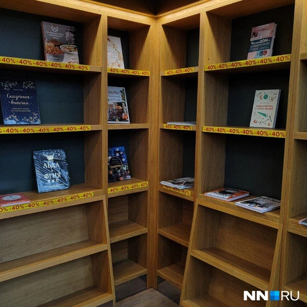 Сейчас скидки почти на все книги — от 20 до 40%. На каждую в магазине наклеили опознавательный стикер. Наибольшая скидка в основном распространяется на тематические книги, например, исторические, кулинарные и художественные.