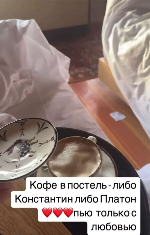 На этот раз Ксения поделилась, как начинается ее утро — она еще не успела подняться с постели, а для нее уже готов завтрак.