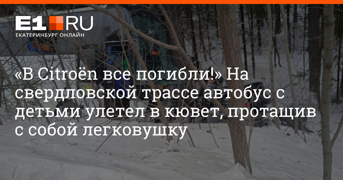 Около поселка Верх-Нейвинского автобус с детьми лоб в лоб столкнулся с Citroën. И улетел в кювет вместе с легковушкой.