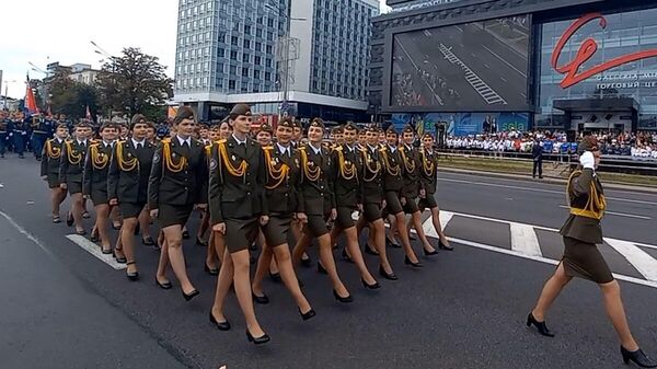 Также по проспекту Победителей прошли ветераны, спортсмены, представители добровольного пожарного общества, юные спасатели-пожарные и сводный оркестр.