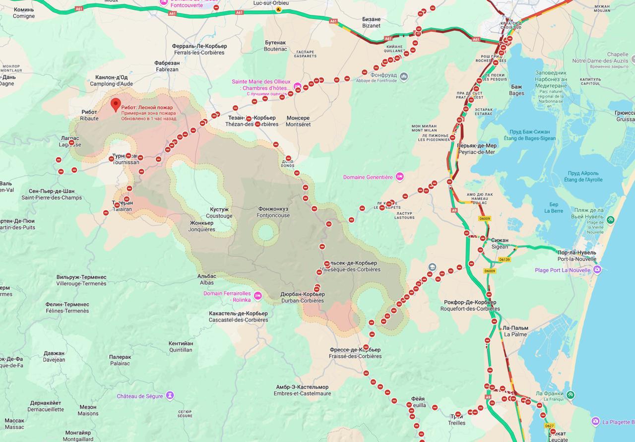 🇫🇷 На юге Франции в департаменте Од разгорелся крупнейший за последние 20 лет лесной пожар. Огонь охватил более 14 000 гектаров, что сопоставимо с площадью целого города.