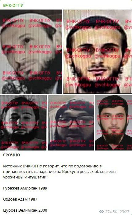 ❗️Ряд Telegram-каналов распространили фейк о том, что по подозрению в причастности к нападению на "Крокус" в розыск объявлены пять уроженцев Ингушетии.