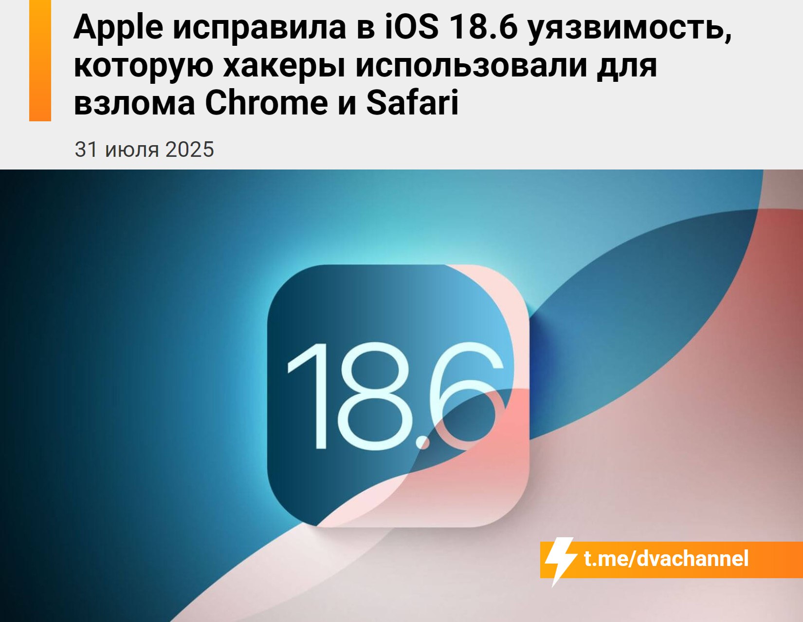 Apple выпустила экстренное обновление iOS 18.6, чтобы закрыть серьёзную дыру в защите. Хакеры уже используют её — достаточно просто зайти на сайт, и вредоносный код запустится. Ничего даже скачивать не нужно.