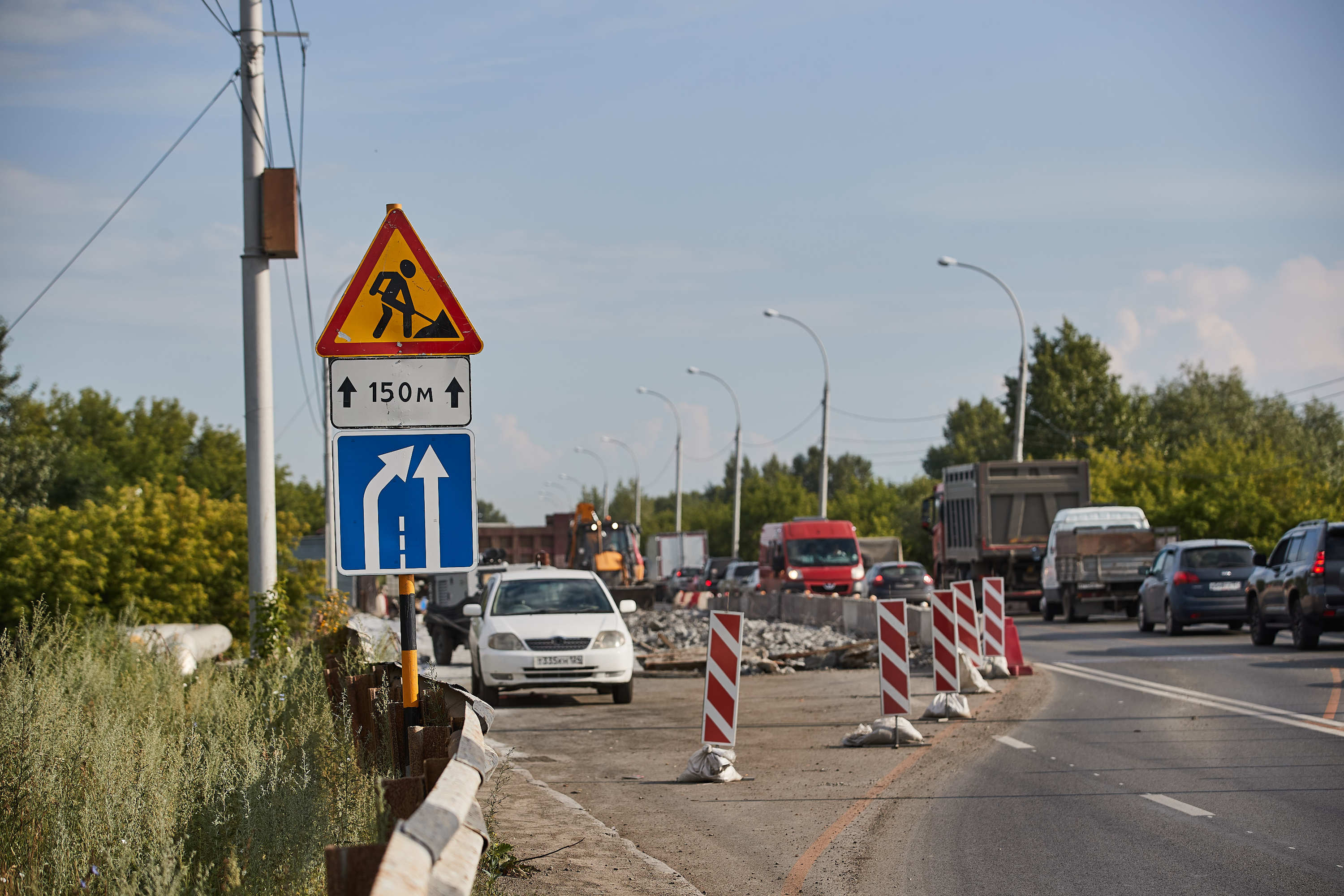 В начале работ движение по 4 полосам уменьшили до 2. В настоящее время дорогу не расширили: