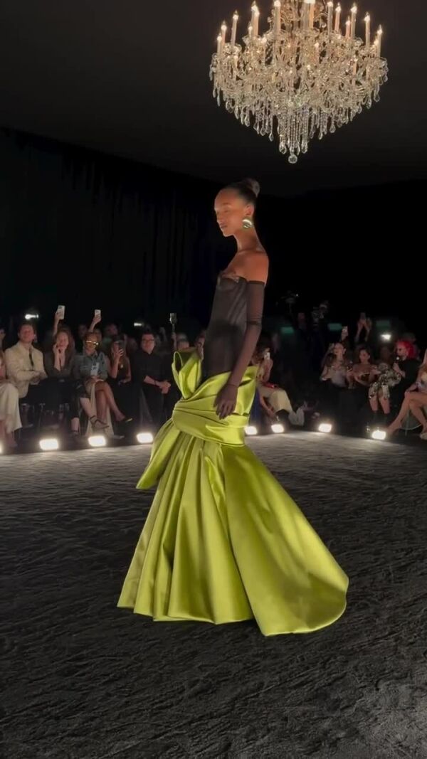 В стенах отеля Salomon de Rothschild гости увидели 31 наряд с имитацией настоящих крыльев, кружевом, объемными шипами, корсетными силуэтами, которые переходили в юбки с бахромой, кристаллы и фирменное золото — от увиденной красоты захватывало дух.