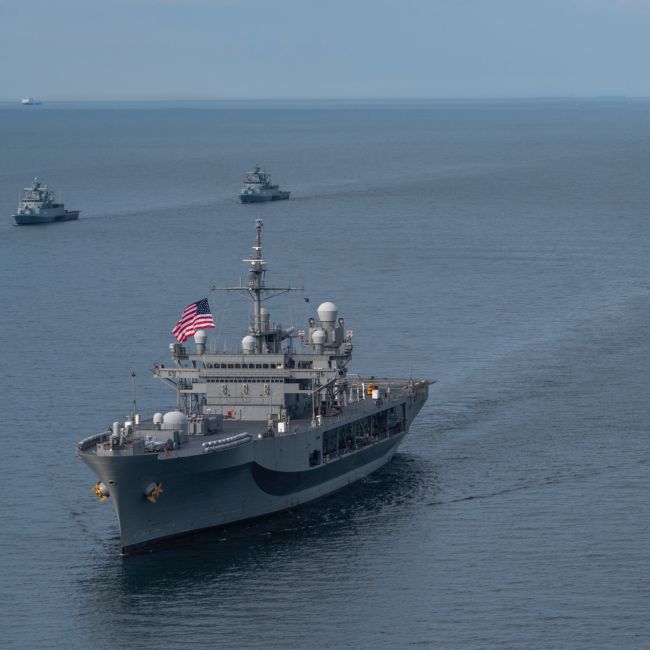 Вчера 6-й флот ВМС США сообщал в соцсети X, что на борту штабного корабля прошли противопожарные учения, а также тренировки спецназа. Также корабль посетил польский Гданьск.