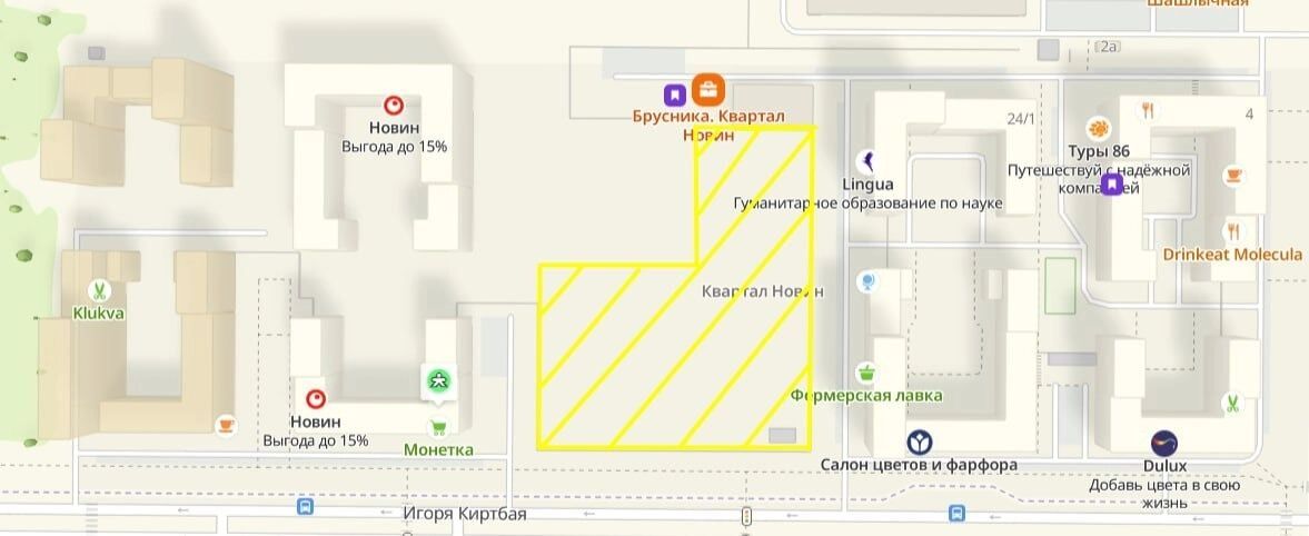 «Сейчас участок огорожен строительным забором. Здесь проводятся инженерные изыскания, и частично площадка используется для хранения зеленых насаждений для квартала „Новин“, — пояснили в Бруснике.