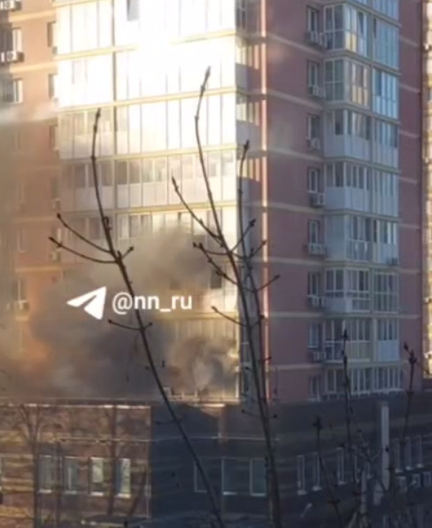 Сильный пожар произошел в одном из многоэтажных зданий Советского района. Кадрами с места происшествия поделились читатели NN.RU.