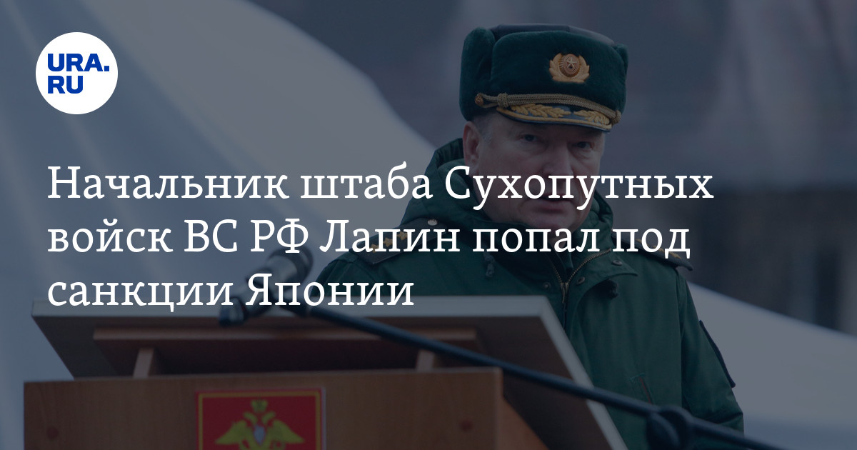 Главнокомандующий Сухопутными войсками ВС РФ Александр Лапин был включен в список лиц, подпадающих под санкции со стороны Японии. Соответствующий документ опубликован на сайте японского министерства иностранных дел.