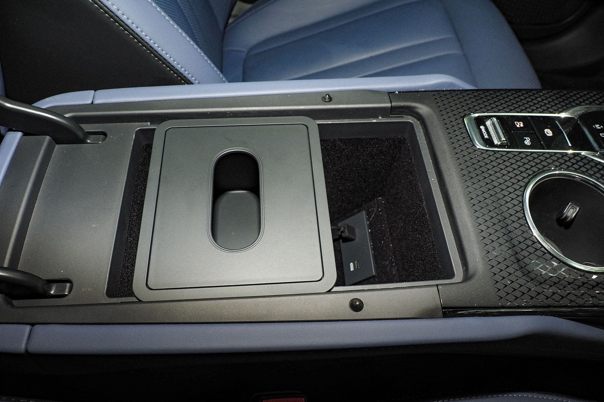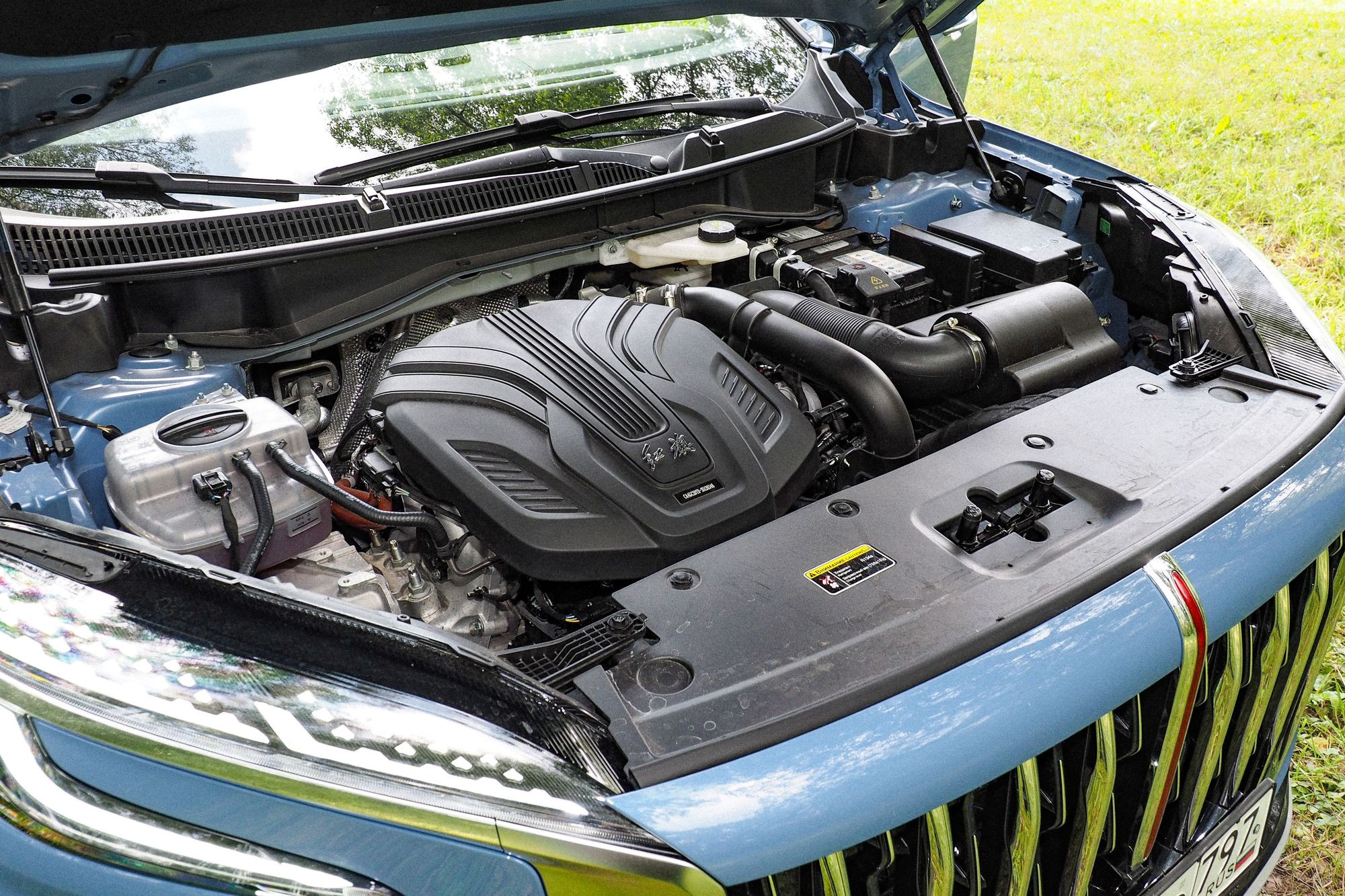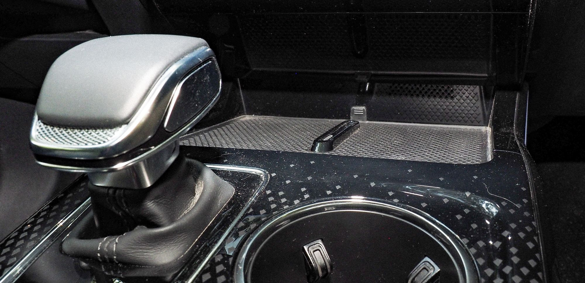 Впрочем, список не самых удачных эргономических решений на этом не заканчивается. Мне не очень понравилось расположение USB-слотов в глубине бокса-подлокотника. Зачем их было туда запихивать, если есть место перед селектором автомата, за двумя площадками беспроводной зарядки? Кстати, работают обе (проверено на телефоне супруги), но моя «лопата» с 6,9-дюймовым экраном туда не поместилась. Но еще более неудобным оказался перенос кнопки включения «аварийки» с передней панели на потолочную консоль, в единый блок с клавишами управления панорамным люком. А чтобы увидеть еще одно крайне неудачное решение с точки зрения эргономики, нужно открыть капот и представить, как вы будете заливать «незамерзайку» из пятилитровой бутыли в крохотное отверстие приемной горловины бачка омывателя, зажатое в угол подкапотного пространства. К тому же сам капот и пневмоупоры перекрывают доступ как минимум с трех сторон. Пристроить бутыль еще можно, а вот увидеть, куда вы льете жидкость, уже трудно.