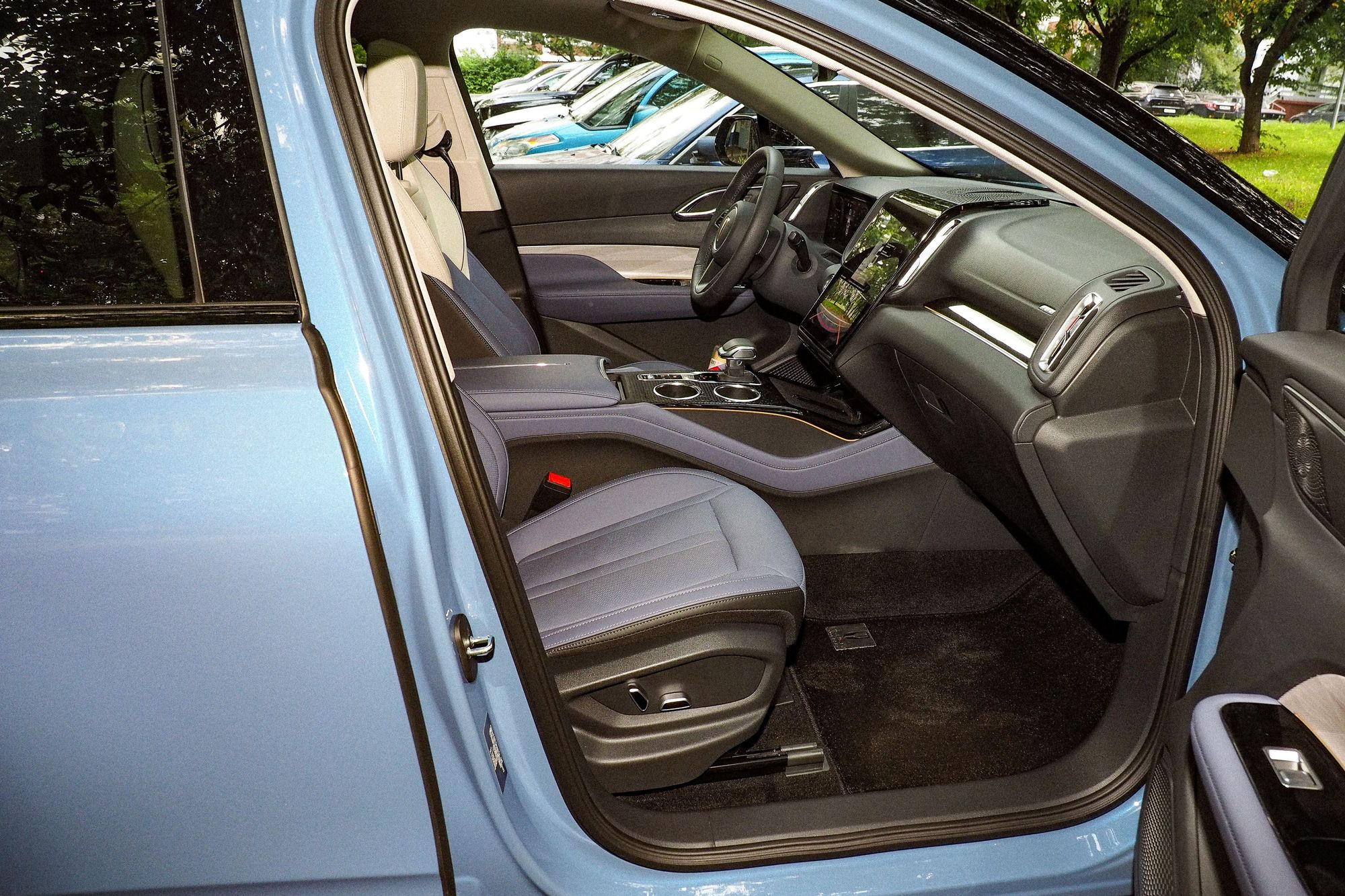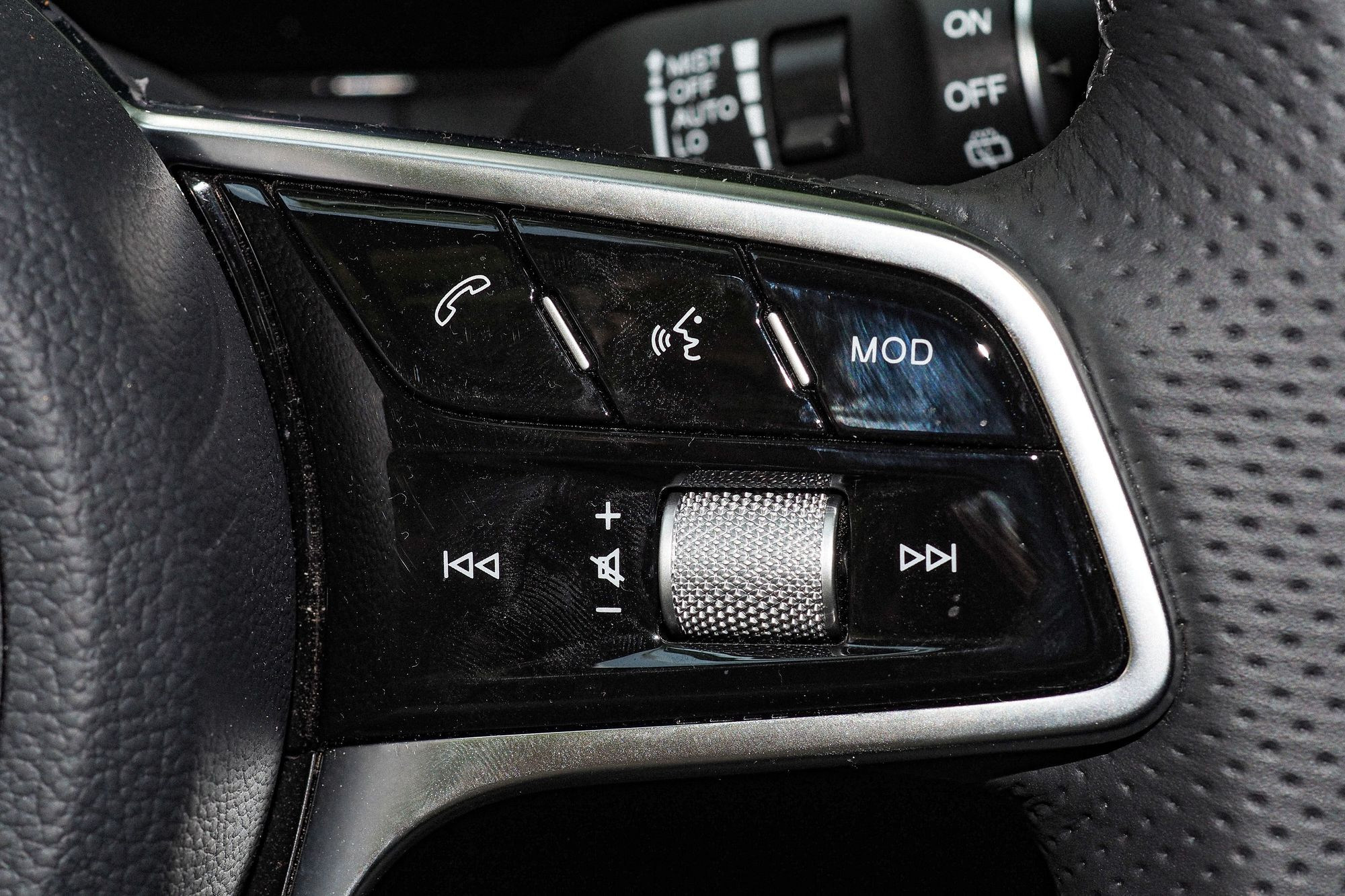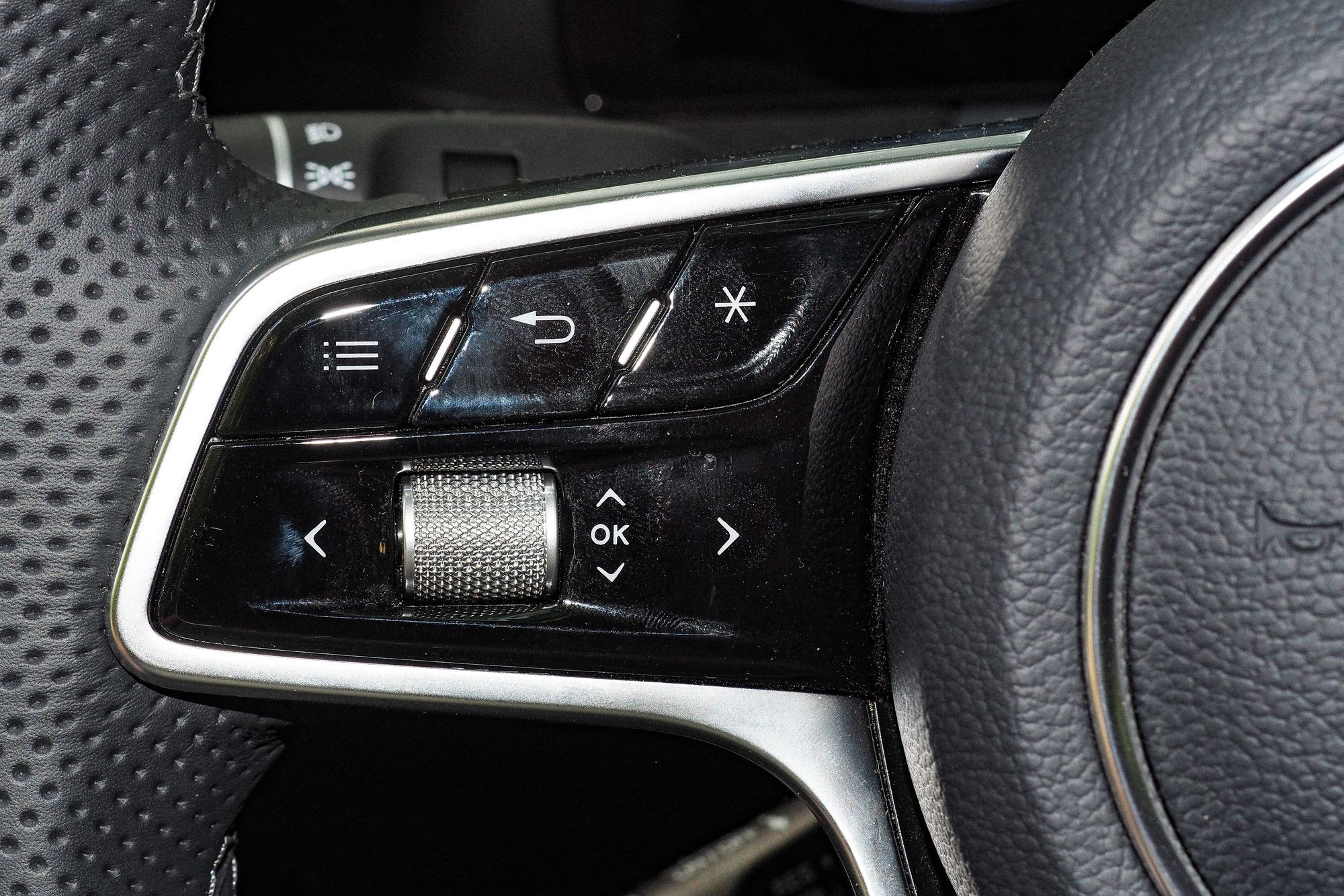 Если заглянуть на первый ряд сидений, то сразу чувствуешь некоторое сходство, хотя есть, конечно, и различия. В HS3 нет вставок ни под дерево (как в новом HS5), ни под «змеиную кожу»; вместо единого блока из двух дисплеев установлены два отдельных экрана, один – заменяющий комбинацию приборов и крупный 12,6-дюймовый сенсорный дисплей с вертикальной ориентацией. Сенсорные клавиши управления климатом переместились с отдельной панели в нижнюю часть рамки центрального тачскрина, а блоки клавиш на спицах руля получили несколько другую форму и напоминают теперь положенную на бок эмблему марки. По пространству, предоставленному водителю и переднему пассажиру, вообще нет никаких отличий – ведь по ширине кузова HS3 и HS5 различаются всего на 5 мм. Но стоит занять рабочее место водителя, как ты понимаешь, что различия все-таки есть.