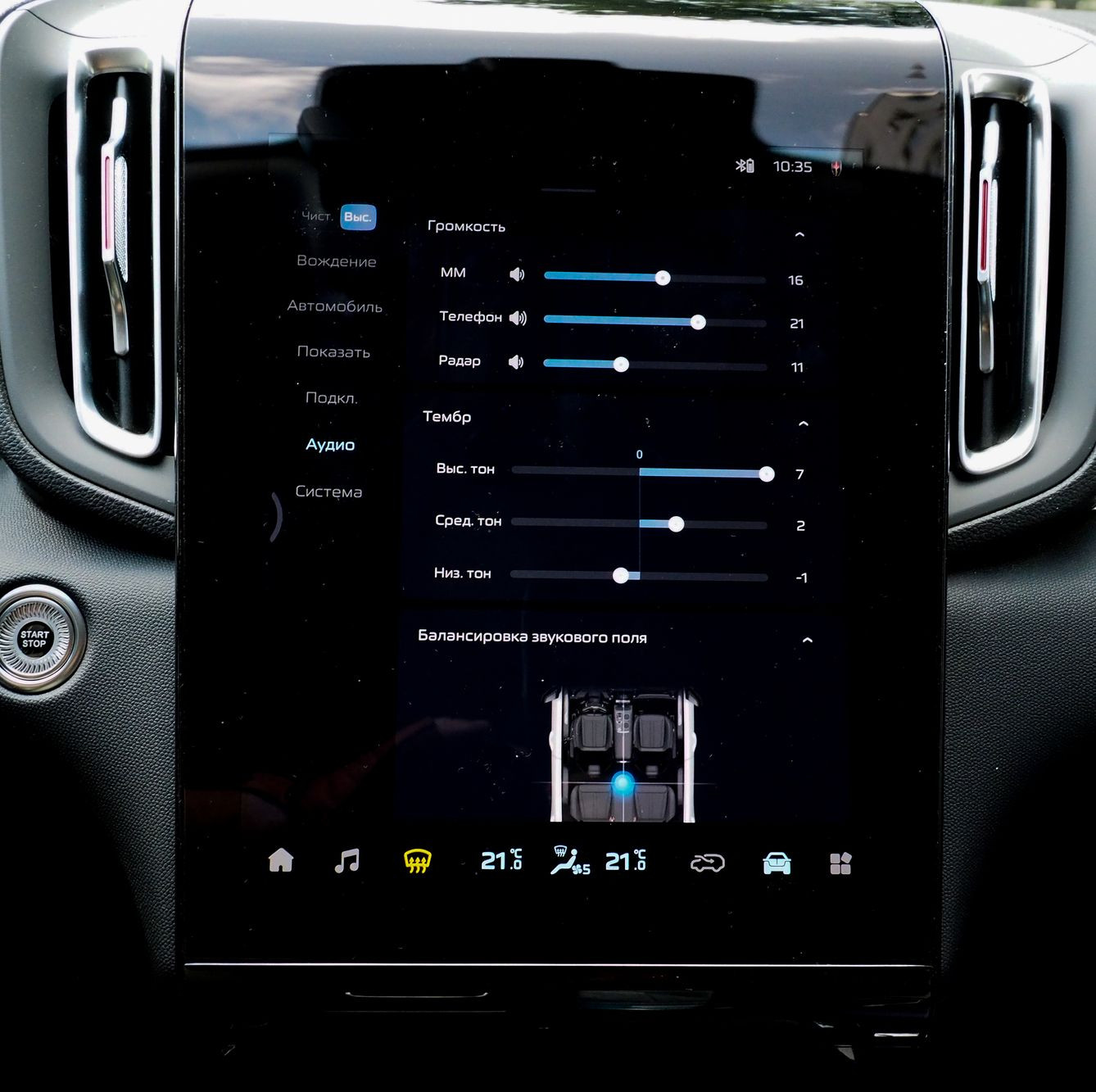В HS5 главным сборником пыли и отпечатков пальцев является покрытая рояльным лаком центральная консоль. В HS3 верхняя поверхность консоли получила текстурированный рисунок в виде ромбиков, и на нем пыль и отпечатки не видны. Но роль главного собирателя как первого, так и второго перехватил центральный тачскрин… Понятно, что автомобильная компания не производит сенсорных дисплеев и заказывает их у сторонних поставщиков. Но в данном случае поставщик явно сэкономил на олеофобном покрытии, и экран превращается в мечту эксперта-криминалиста буквально через пять минут после того, как ты обработаешь его специальным спреем для очистки дисплеев и протрёшь замшевой тряпочкой. Из-за наклонного расположения дисплей имеет склонность бликовать на солнце, а в изогнутой части рамки, заходящей на верхнюю панель, отражается ветровое стекло.