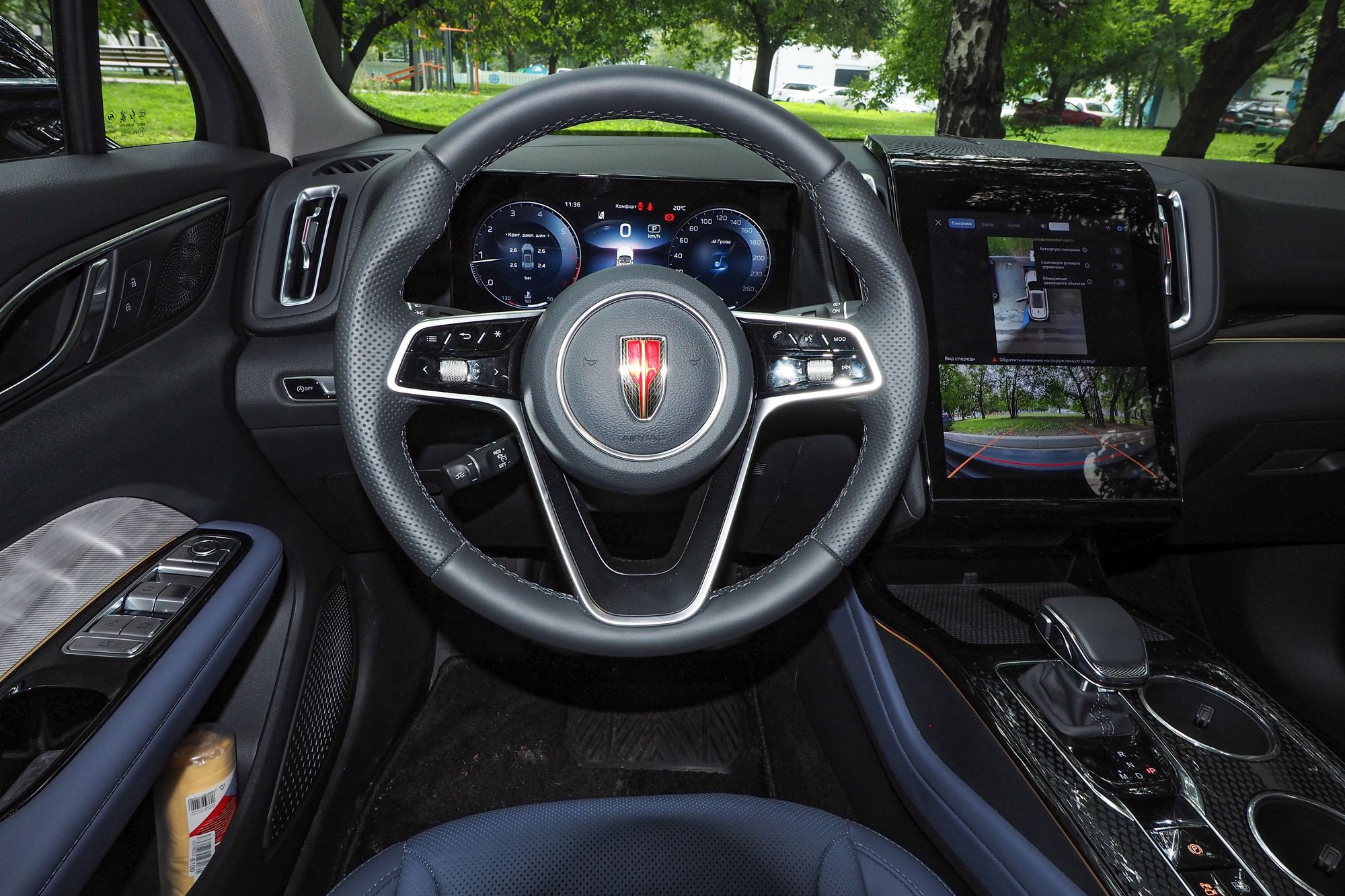 Что же касается подвески, то она отлично ведет себя на пологой волне и не склонна собирать мелочь. При этом крены в быстрых поворотах укладываются в пределы разумного, автомобиль четко держит траекторию, а электроусилитель обеспечивает пусть и искусственную, но вполне приличную реактивную загрузку. Словом, на хороших дорогах все хорошо, и именно на них в первую очередь и рассчитан Hongqi HS3. А вот резких и достаточно крупных препятствий автомобиль не любит. Например, он очень нервно реагирует на искусственные неровности (в обиходе – «лежачие полицейские»). Примерно такие же ощущения возникают и на разбитом асфальте, и на грунтовке. Пробоя подвески я не ощутил ни разу, но даже на относительно небольшой скорости автомобиль содрогается всем своим существом, и ты с ним вместе.