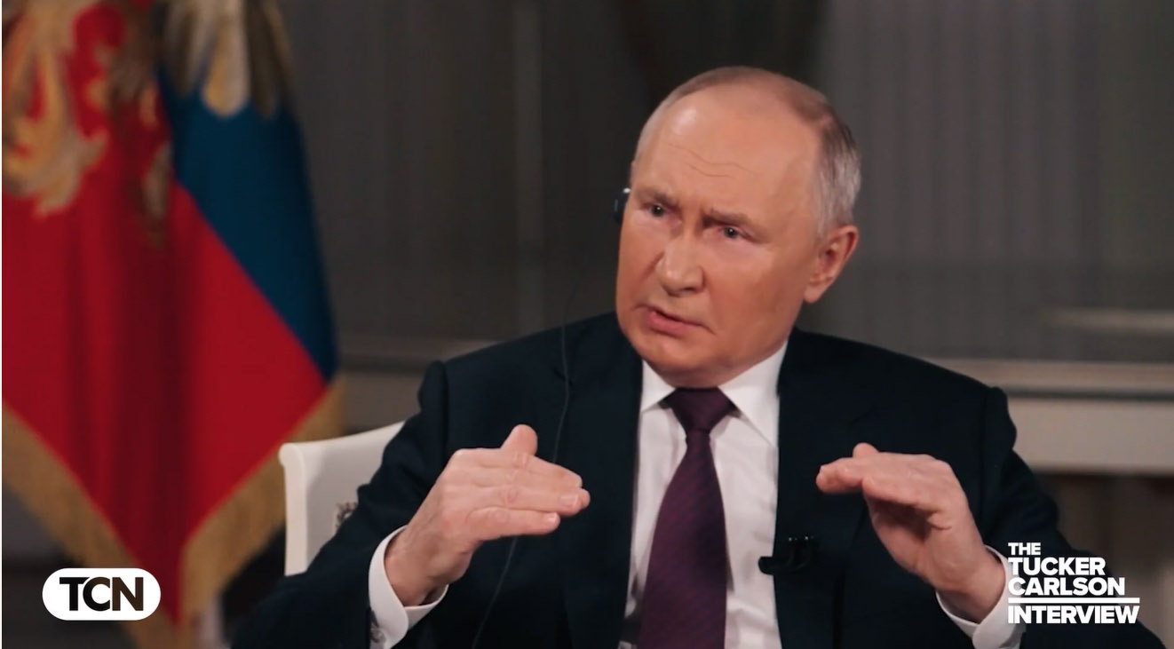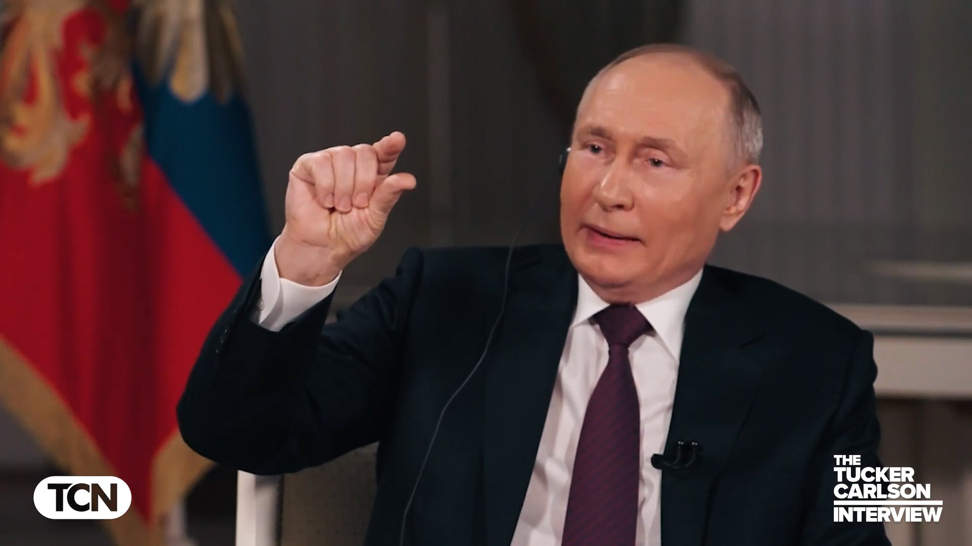 Такер Карлсон начинает интервью с того, что Путин когда-то объяснял действия России возможностью неожиданного нападения США. «Дело не в том, что Америка собиралась наносить неожиданный удар по России, я так и не говорил», — сразу отвечает президент России, после чего выдает журналисту продолжительную историческую справку о существовании России и Украины — от Рюрика через монголо-татарское иго, Богдана Хмельницкого, Вечный мир, Екатерину II, Первую мировую войну, создание СССР, пакт Молотова-Риббентропа, Великую Отечественную войну, распад Советского Союза, политические кризисы на Украине и в итоге майдан.