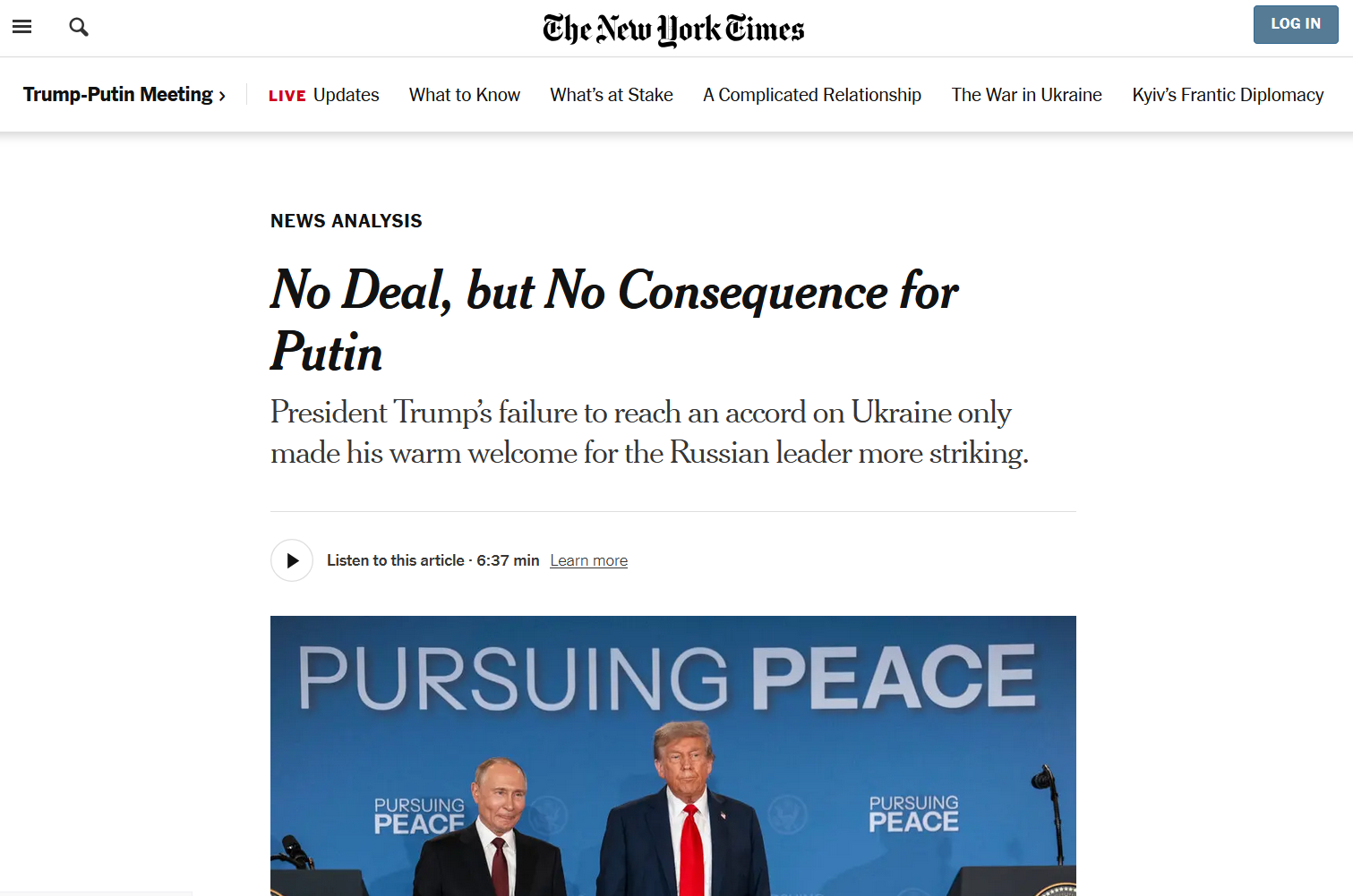 NYT подчёркивает, что на эту «впечатляющую дипломатию» ушло «меньше четырёх часов».