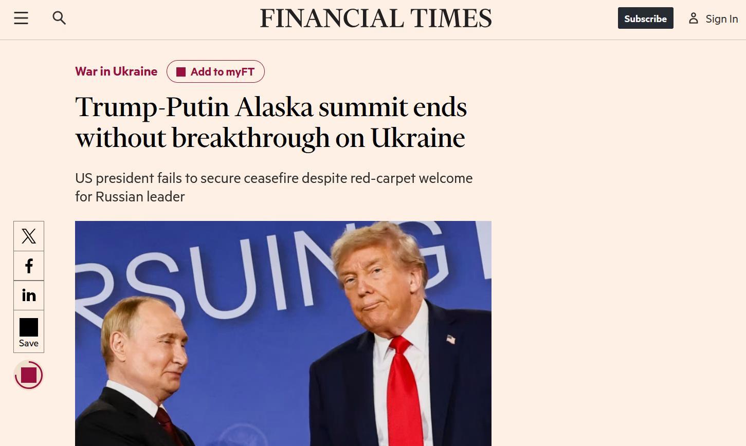 Тем временем Financial Times (FT) сетует, что, «несмотря на приём с красной ковровой дорожкой», российский президент не пошёл на уступки.